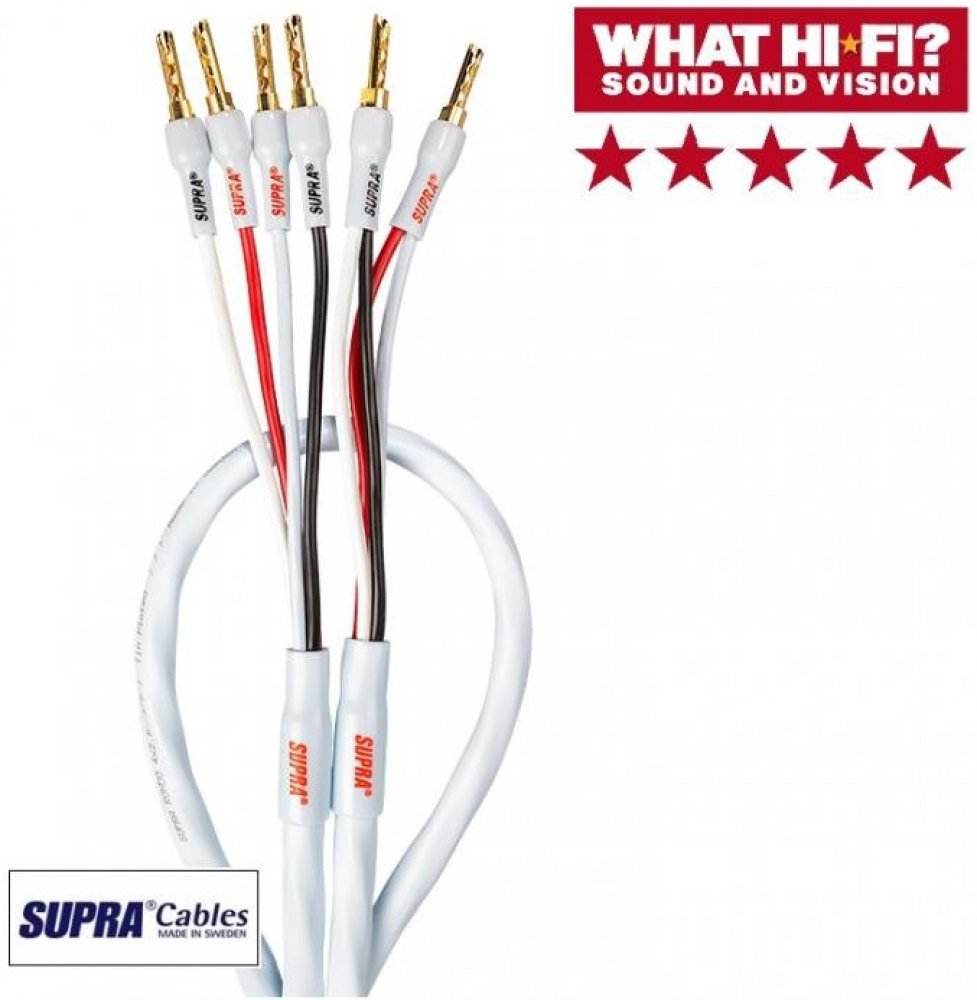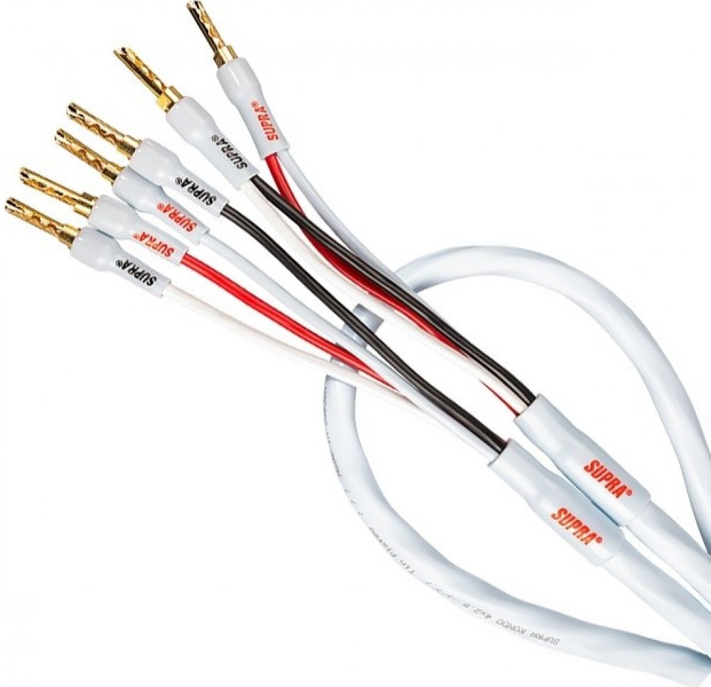 Set kvalitních reproduktorových kabelů SUPRA Rondo SET 4 x 2,5 (mm²) zakončených zlacenými banánky. Pro připojení reprosoustav systémem Bi-wire.