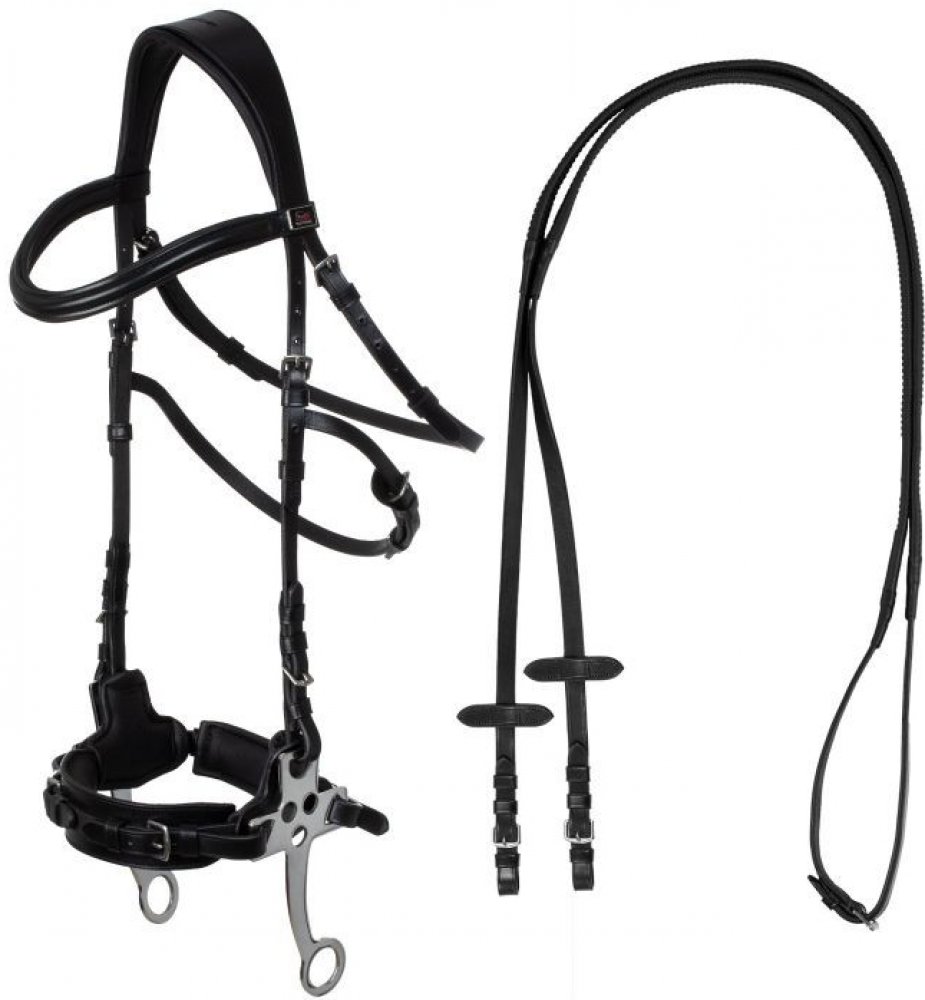 Kompletní uzdečka pro bezudidlové ježdění vyrobena z velmi měkké a kvalitní hladké kůže. Měkce polstrovaná pro maximální pohodlí koně. Ideální pro koně, kteří mají problémy s ústní dutinou, jsou příliš citliví nebo zvyklí jezdit bez udidla. Dodávána včetně oteží.