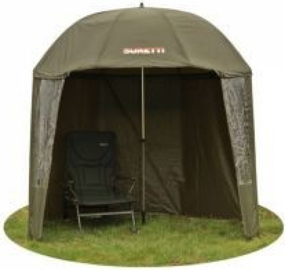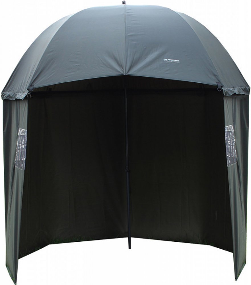 Rybářský deštník s bočnicí z 210D materiálu. Švy jsou podlepené, po obvodu vrchlíku jsou čtyři očka k ukotvení, deštník je dodáván se čtyřmi stavitelnými provazy a kolíky. Vrchlík lze naklopit pomocí kovového kloubu, žebra jsou z ocelových drátů 1,25m dlouhých, eloxovaných černou barvou. Středová tyč je teleskopická s novým, velmi spolehlivým adaptérem, který vnitřní trubku svírá po celém obvodě. ...