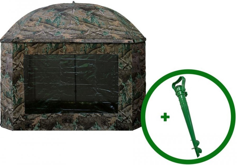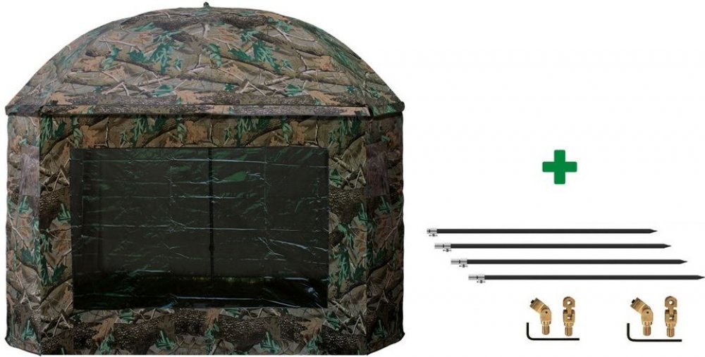 Akční set deštník s bočnicí Full Cover s vrchlíkem ve tvaru čtverce a k němu v set na podporu deštníku pro zvýšení stability. Deštník s bočnicí Full Cover 2MAN CAMO s vrchlíkem ve tvaru čtverce. Švy jsou podlepené, po obvodu vrchlíku jsou čtyři očka k ukotvení, deštník je dodáván se čtyřmi stavitelnými provazy a kolíky.