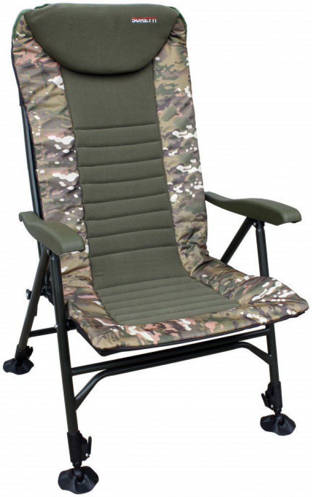 Pohodlné a exkluzivní rybářské křeslo v CAMO provedení s anatomicky tvarovanou matrací s micro fleece a prodlouženým opěradlem. Pohodlné a exkluzivní rybářské křeslo v CAMO provedení s anatomicky tvarovanou matrací s micro fleece a prodlouženým opěradlem. Opěradlo má pohodlný polštář a na bocích matrace je lem camo 600D oxford, chránící před větrem a zimou.