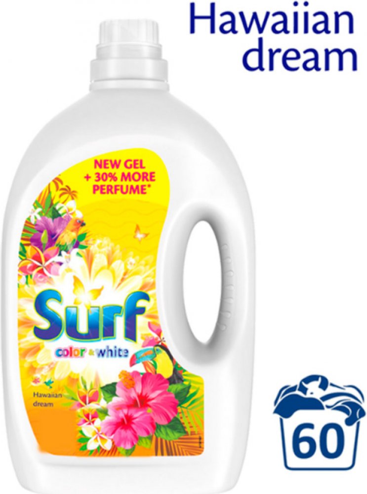 Vyzkoušejte exotickou variantu univerzálního pracího prostředku Surf Hawaiian Dream, který může být použit k praní barevných oděvů.