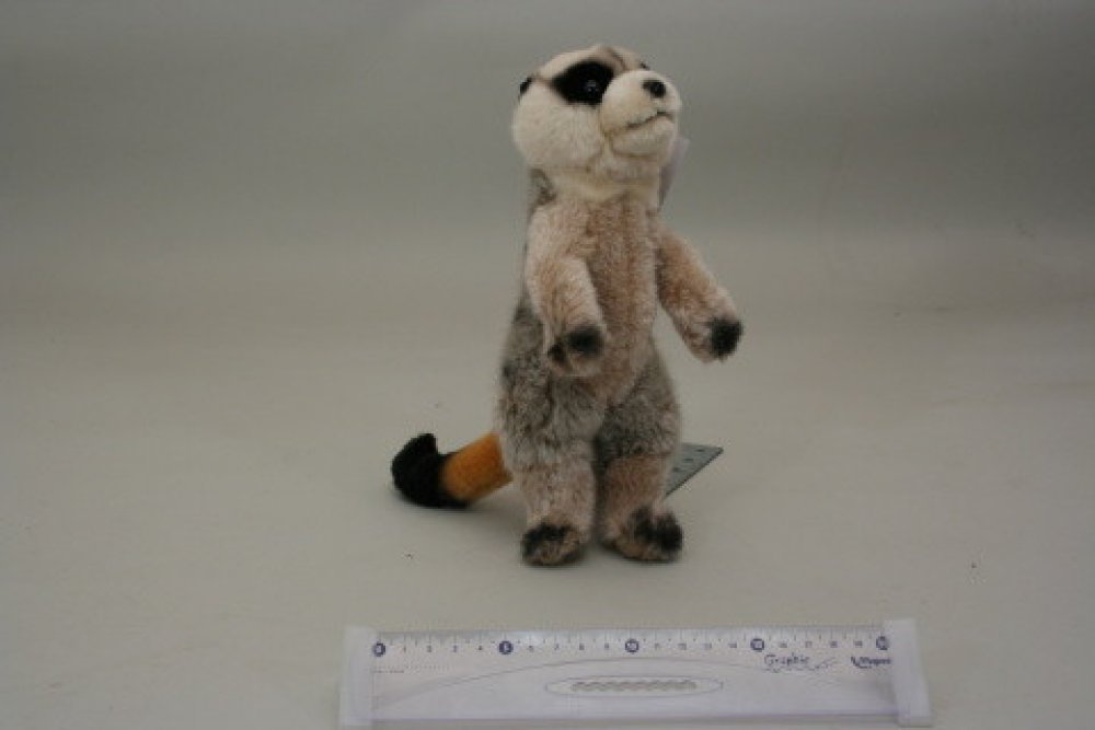 Plyšová surikata o velikosti cca 27 x 10 x 8 cm.