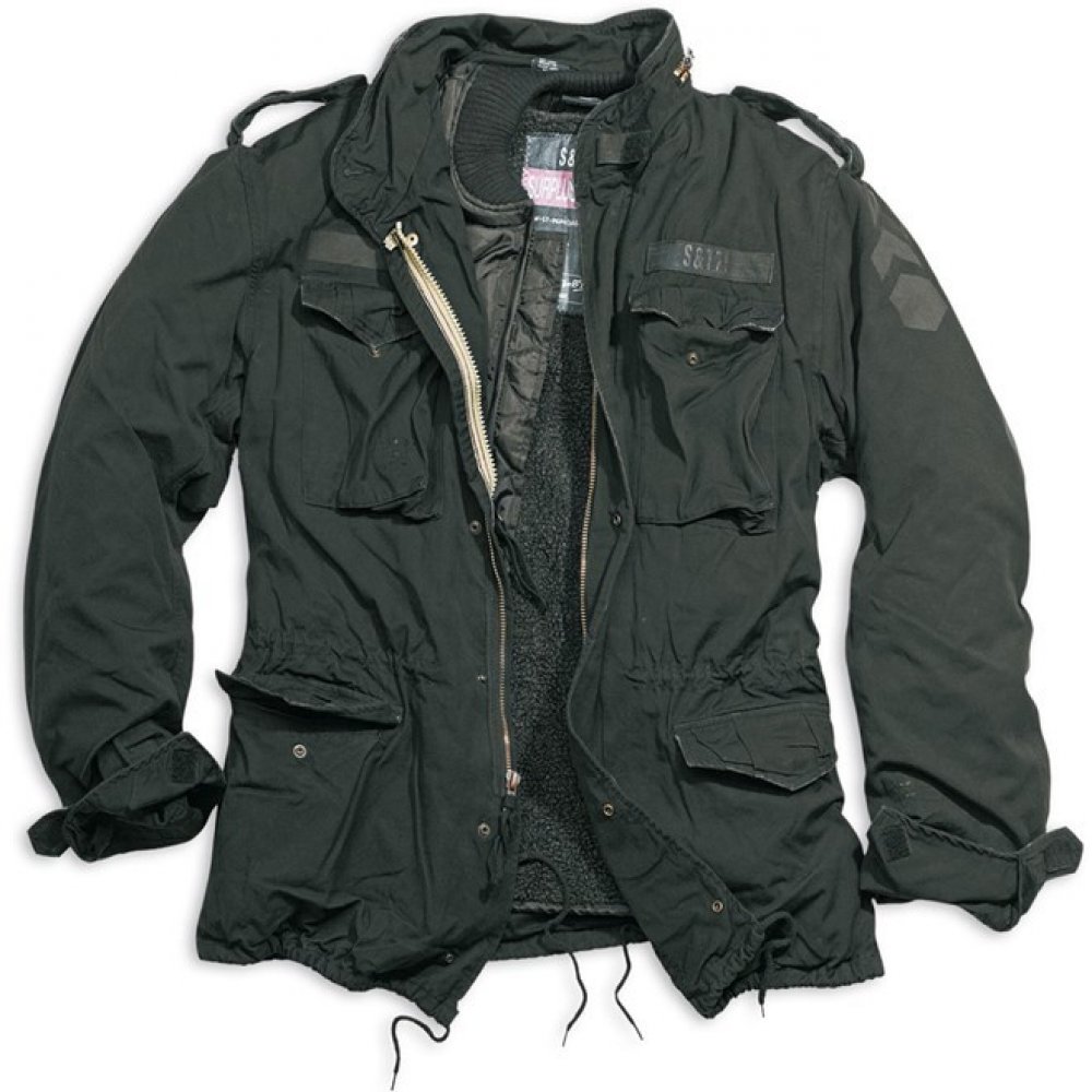 Surplus 100 % bavlna bundy zimní volnočasové bez voděodolnosti 67 % bavlna, 33 % nylon (rukávy 100 % nylon) černá loose fit jednobarevné s nižší odolností