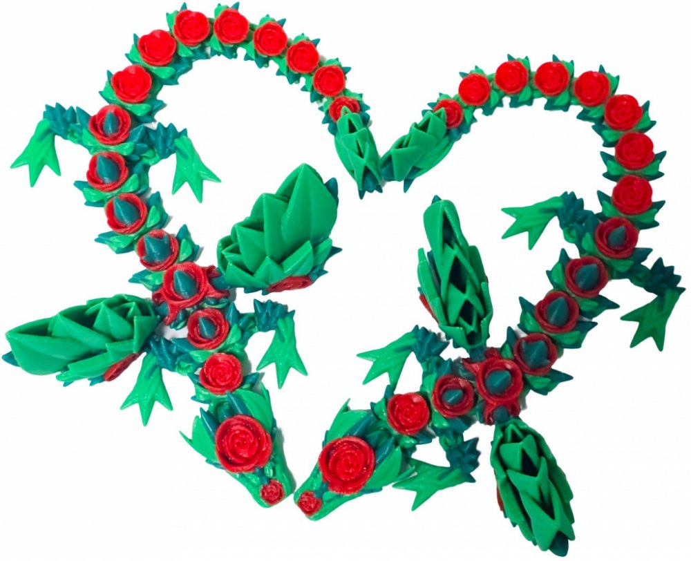Tento zelenomodrý drak s červenými růžemi je složen z několika dílků, které se mohou pohybovat. Když dáte dva draky k sobě vytvoříte z nich zamilované srdce (viz foto).