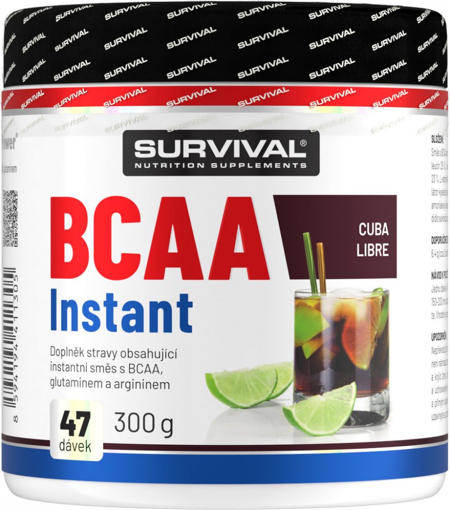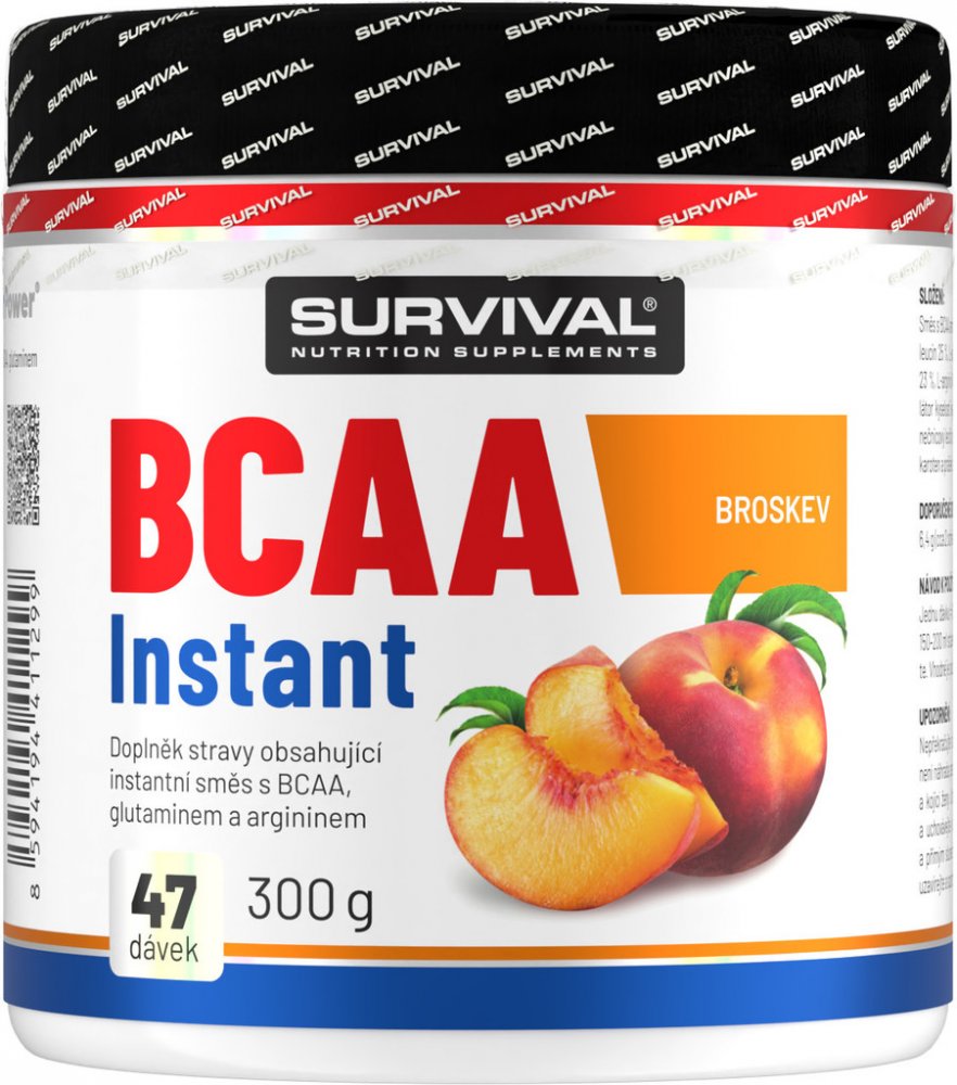 Survival 300 g v prášku s BCAA 5.0 g L-glutamin 1.5 g; L-leucin 1.5 g; L-isoleucin 0.75 g 3.0 g/porce 46 porcí