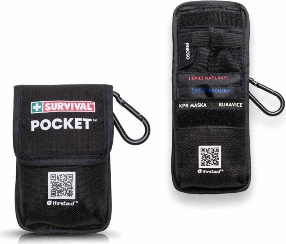 SURVIVAL Pocket Kit je malý, ale maximálně praktický pomocník pro situace, kdy je potřeba začít s resuscitací okamžitě. Díky svým rozměrům se vejde do kapsy, kabelky nebo lékárničky v autě a díky karabině ji snadno připnete na batoh nebo výstroj.