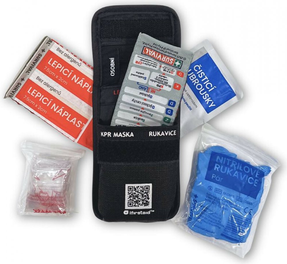 Obsahuje jednorázovou resuscitační roušku, ochranné pomůcky, náplasti a přehlednou KPR kartu v češtině, která vás při poskytování první pomoci jasně vede...