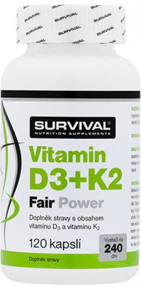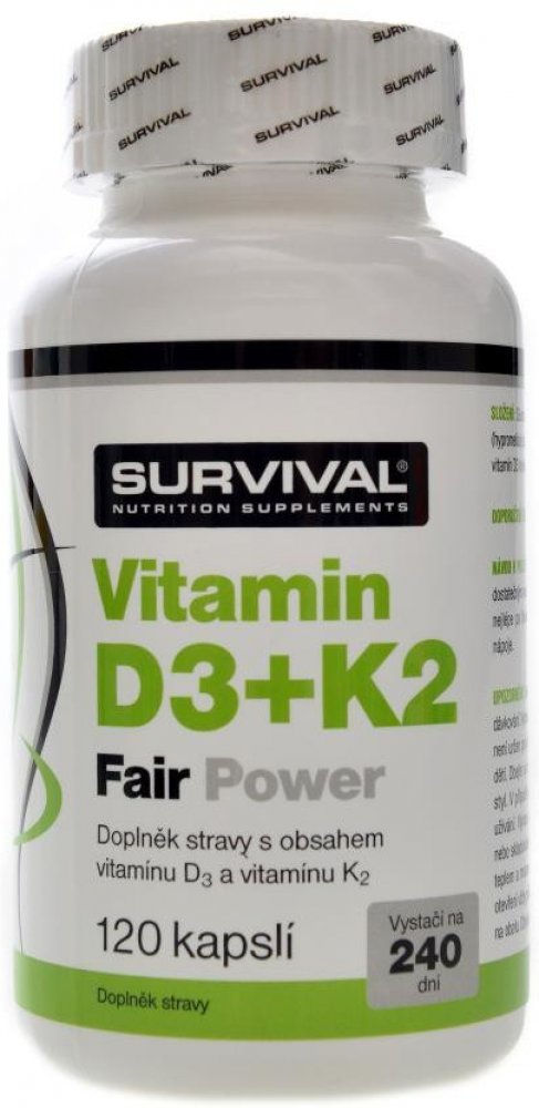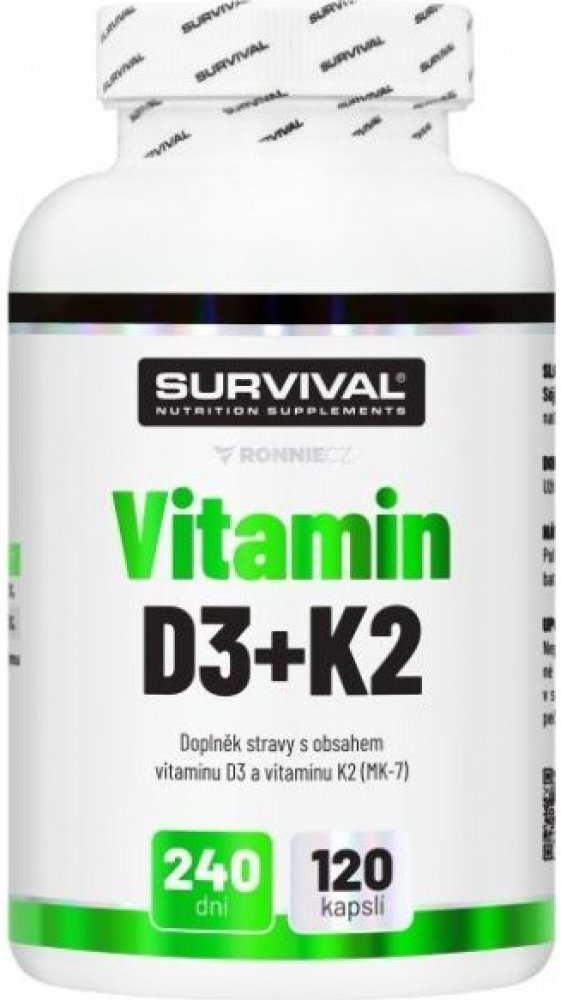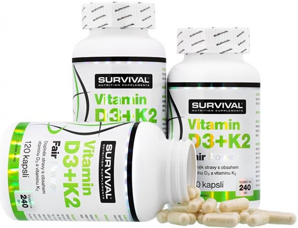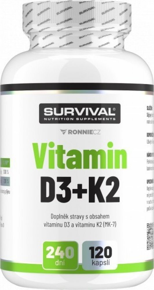 Survival 120 tbl kapsle klouby, kosti, svaly unisex 66 g Survival pro dospělé perorální bez příchutě Česká republika vitamín D3 kosti a klouby s postupným uvolňováním 240 2000.0 IU Kdykoliv 1 za 2 dny Suché místo + pokojová teplota, Chránit před světlem/sluncem, Mimo do… s vitamínem K2