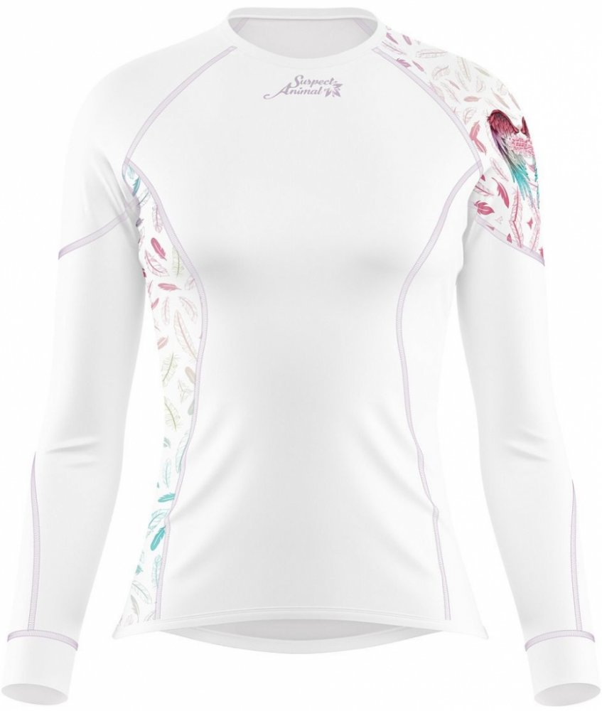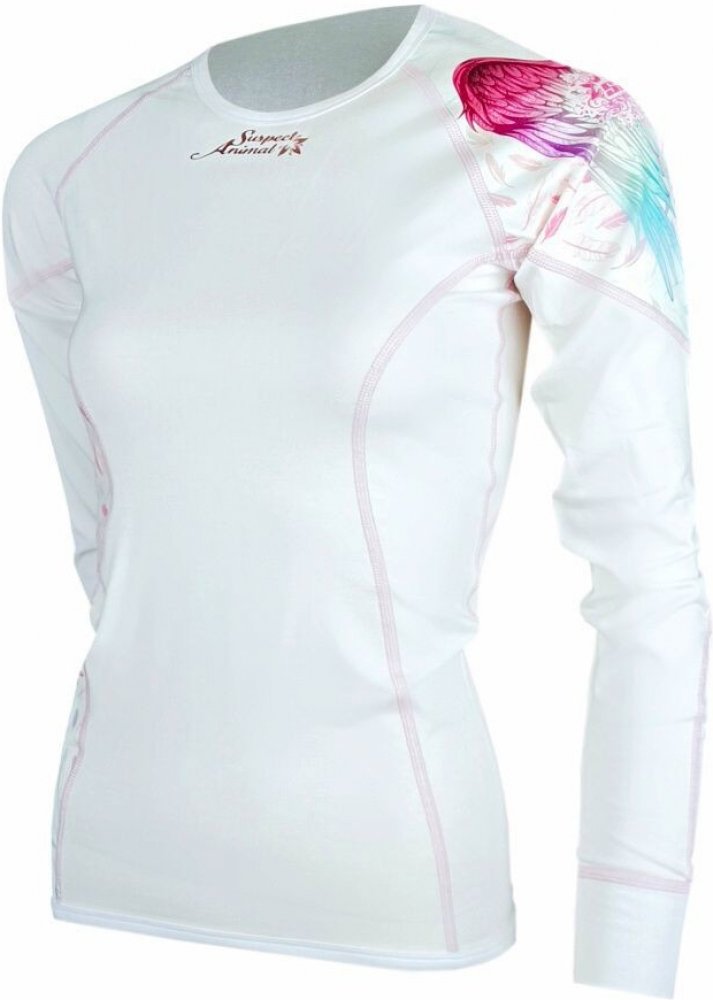 Podívejte se na naše jedinečné dámské bílé funkční sportovní tričko ANGEL s dlouhým rukávem a originálním potiskem andělských křídel, které pro vás šijeme z antibakteriálního materiálu Bamboo Ultra.
