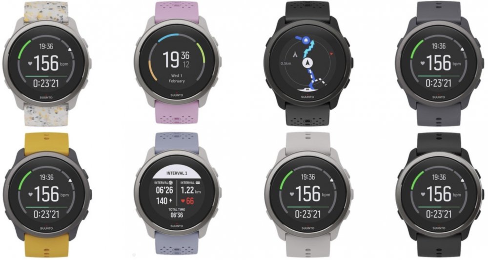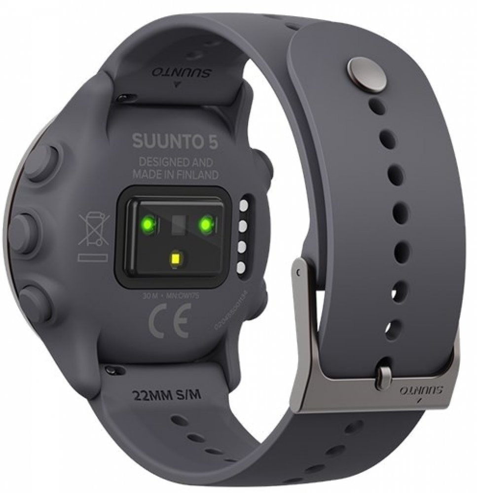 • Suunto 5 – menší a cenově dostupné multisportovní model bez barometru a s měřením tepu v hodinkách. Je vhodný i pro útlejší zápěstí.