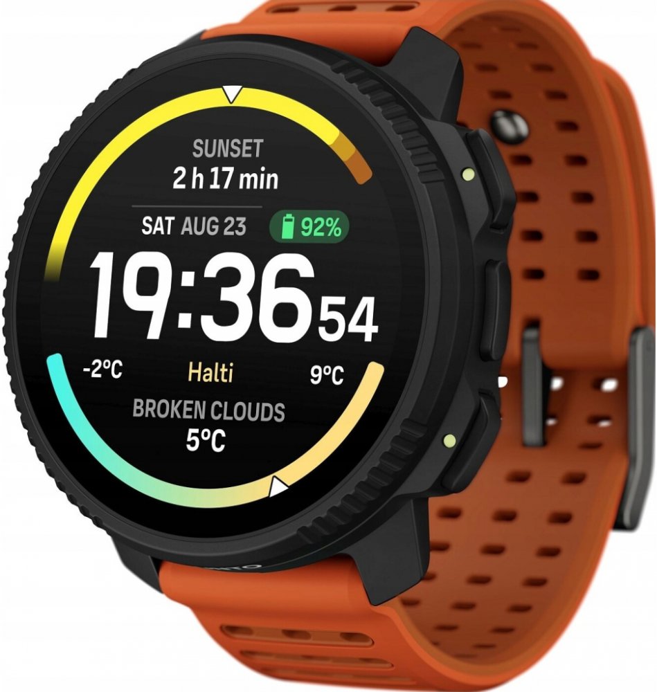 Suunto Vertical 2 navazuje na původní model s jasnějším a větším AMOLED displejem, přepracovaným optickým snímačem srdečního tepu kombinovaným s plochou zadní stranou pro lepší usazení a vestavěnou LED svítilnou, která poskytuje bezpečí a pohodlí po setmění.