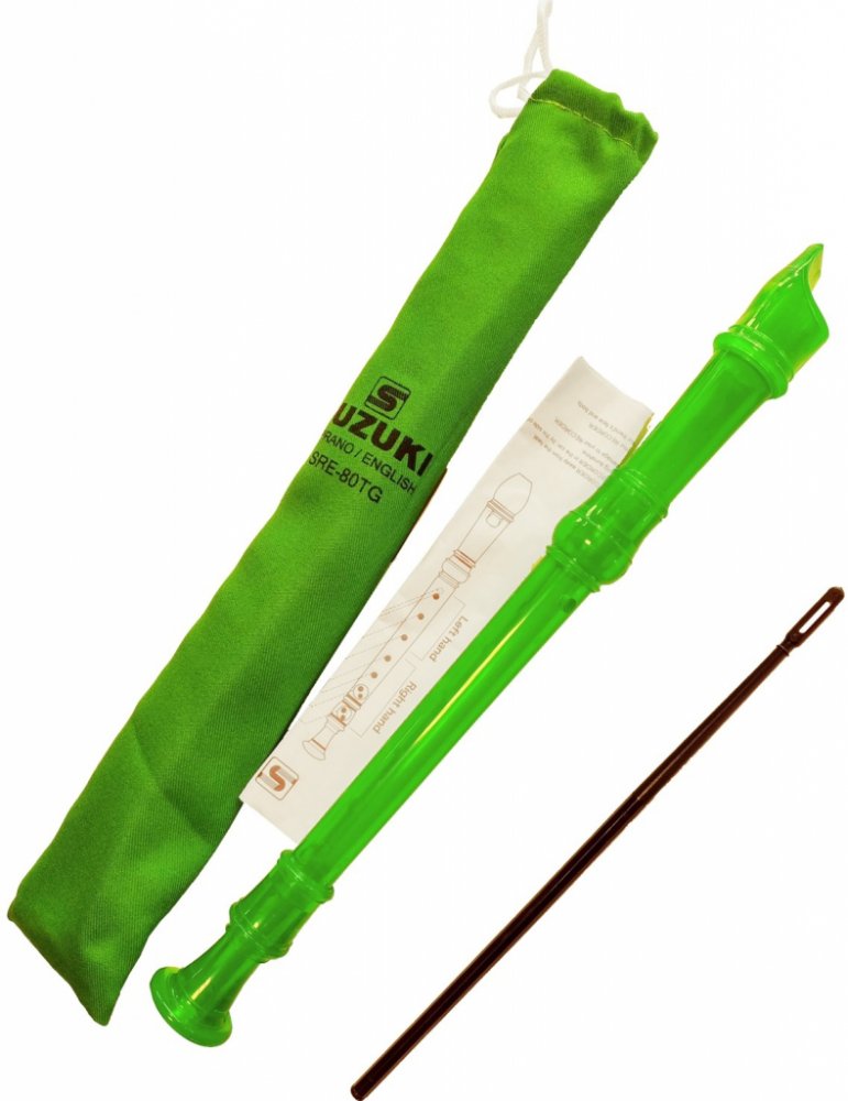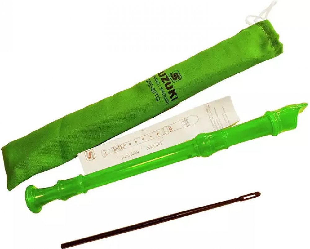 Suzuki SRE-80 TG je plastová sopránová zobcová flétna v zeleném provedení s barokním (anglickým) prstokladem. Jedná se o třídílnou zobcovou flétnu, což usnadňuje její nastavení pro menší dětské prsty a také usnadňuje její údržbu. Flétna prochází pečlivým testováním a nabízí skvělý zvuk a perfektní ladění. Je dodávána v plátěném pouzdře, včetně plastového vytěráku pro údržbu flétny a tabulky prstok...