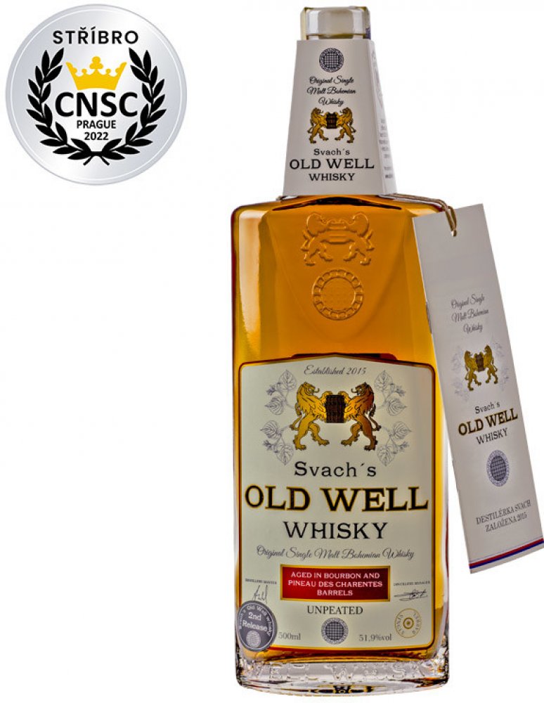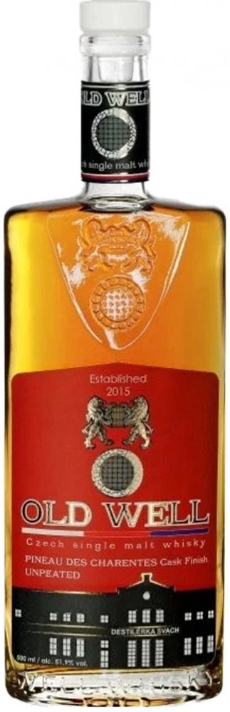 Svach's Old Well Whisky Bourbon Pineau je česká originální whisky, která byla destilována z českého sladového ječmene a zrála nejprve v klasickém sudu po bourbonu, poté finišovala v sudu po sladkém červeném víně Pineau des Charentes z francouzského regionu Cognac. Výsledkem je harmonická, plná a ovocná whisky, která si vás získá svou výraznou, ale hladkou chutí. Degustační profil: Vůně: Výrazné tóny jahod, bezu a pomerančové kůry. Chuť: Lesní ovoce, borůvková marmeláda, zároveň jemná i intenzivní. Závěr: Středně dlouhý, s dozníváním sušeného ovoce. Tip na podávání: Nejlépe si ji vychutnáte čistou nebo s několika kapkami vody, které rozvinou její komplexní ovocný charakter. O Destilérii Svach: Destilérie SVACH, založená v roce 2015, představuje odvážný projekt, který kombinuje tradiční moravské postupy s moderními technologiemi. Ve spolupráci s pivovarem Glokner vytváří destilérie SVACH unikátní destiláty, jež jsou výsledkem pečlivě řízené fermentace a důmyslné destilace.