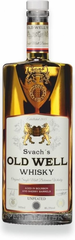 Svach´s Old Well Whisky byla destilována ze sladového ječmene a stařena v sudech po americkém bourbonu a následně po Sherry Pedro Ximénez 46,3% alc.