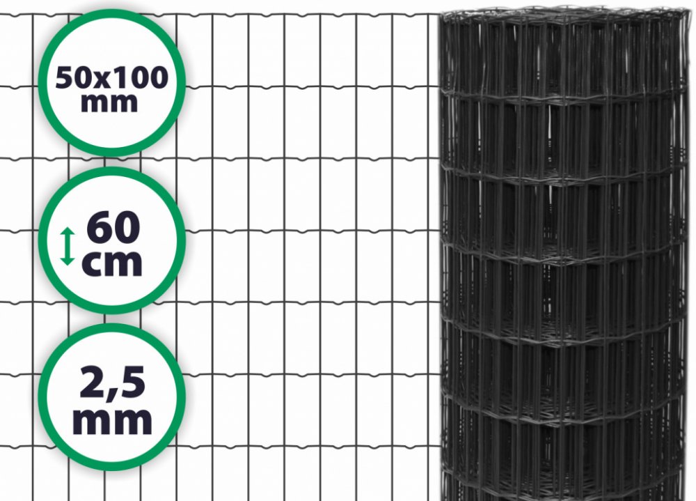 Svařované pletivo Antracit je výjimečné zejména svoji barvou. Pletivo má sílu drátu 2,5 mm a průměr oka 50 x 100 mm.