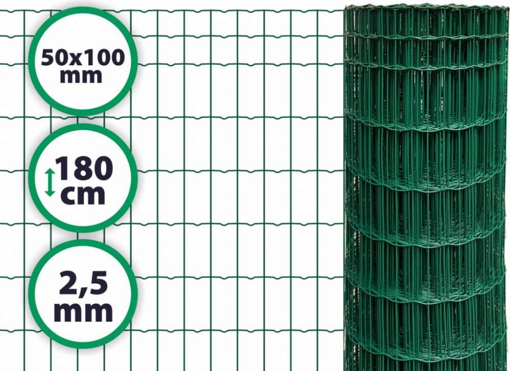 Svařované pletivo Pilonet Middle – výška 180 cm, drát 2,5 mm, oko 50x100 mm