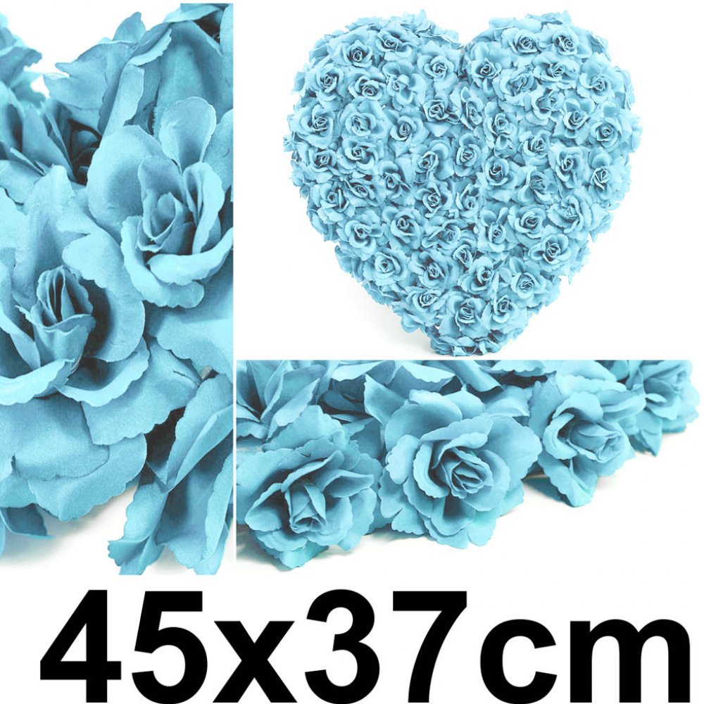 Svatební dekorace ve tvaru srdce o rozměrech 45 x 37 cm je vyrobena z textilních květů růží světle modré barvy. Připevňuje se pomocí oboustranných lepicích pásek, které jsou součástí výrobku. Pro připevnění na auto doporučujeme přikoupit přísavky. Prodáváme po 1 kuse.