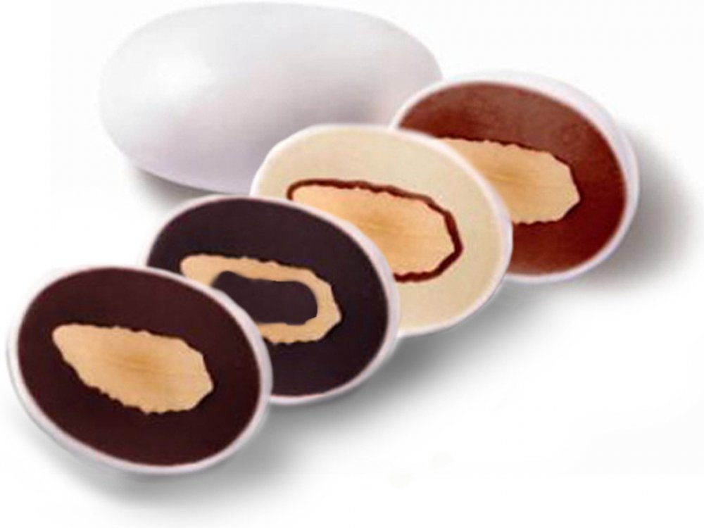 složení: základem je mandle, která je obalena několika vrstvami čokolády a polevou bílé barvy.