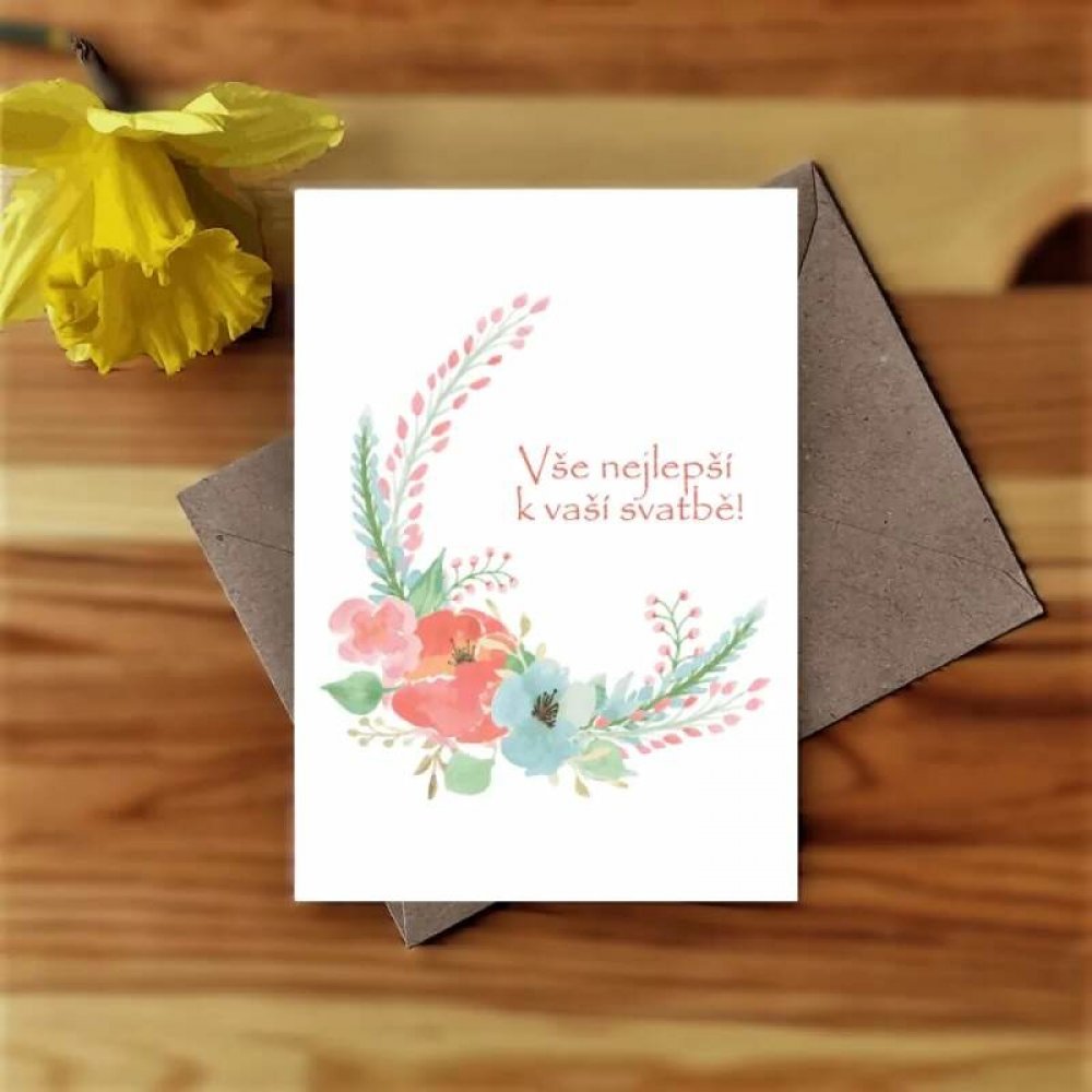 SVATEBNÍ GRATULACE - OTEVÍRACÍ BLAHOPŘÁNÍ S OBÁLKOU z kolekce PASTELOVÉ ŠTĚSTÍ. Kolekce PASTELOVÉ ŠTĚSTÍ je plná kouzelných, nevšedních a stylových akvarelových ilustrací, které svou jemností a elegancí podtrhnou důležitost události - vepište svůj originální textpro novomanžele a jedinečná gratulace je na světě! :-)