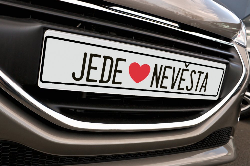 Plastová SPZ na svatební auto. Velikost 52 x 11 cm.