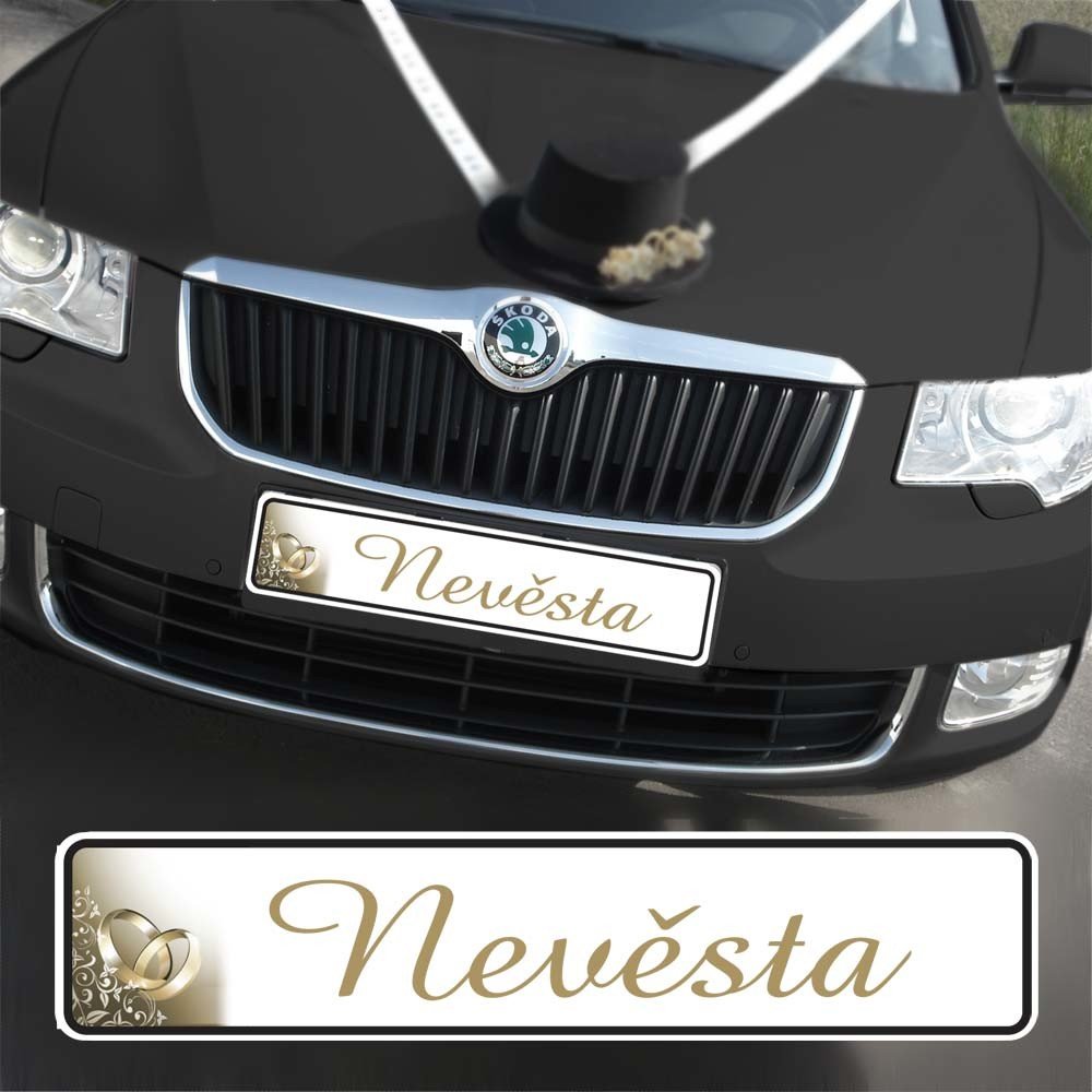 Svatební SPZ s textem - Zlaté prsteny - nevěsta (1 ks)