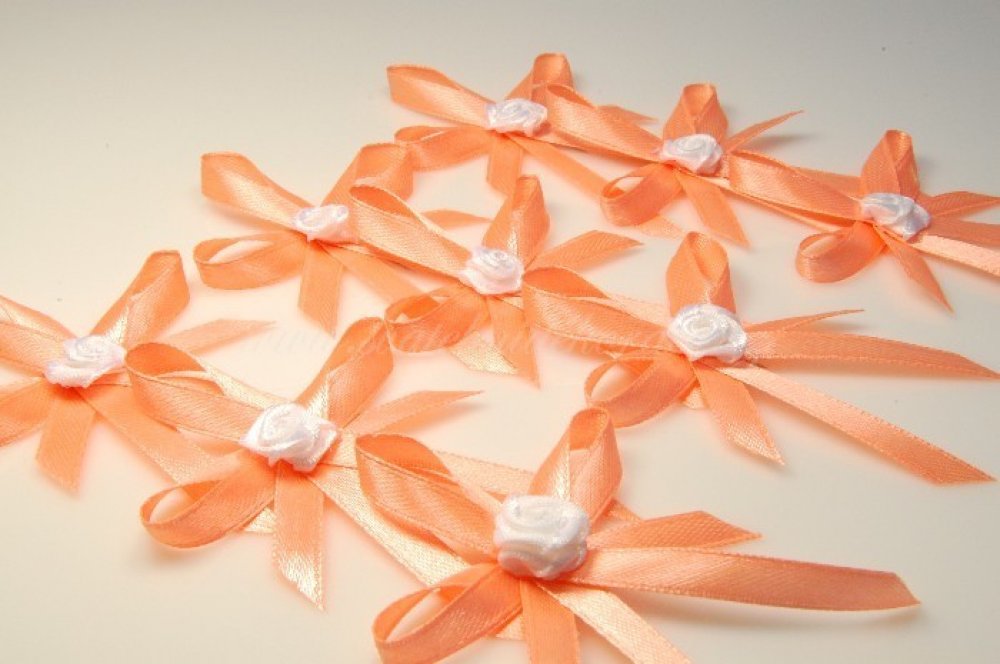 Svatební vývazky atlasové, s růžičkou - lososová (1 ks)