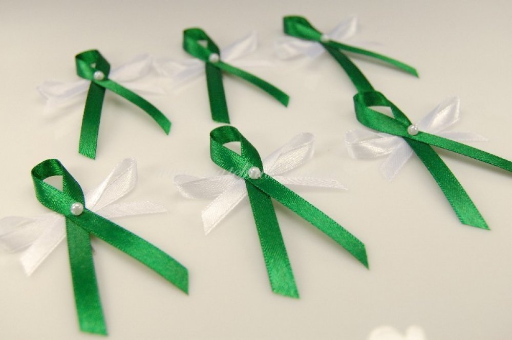 Svatební vývazky s perličkou a atlasovou stužkou (1 ks)