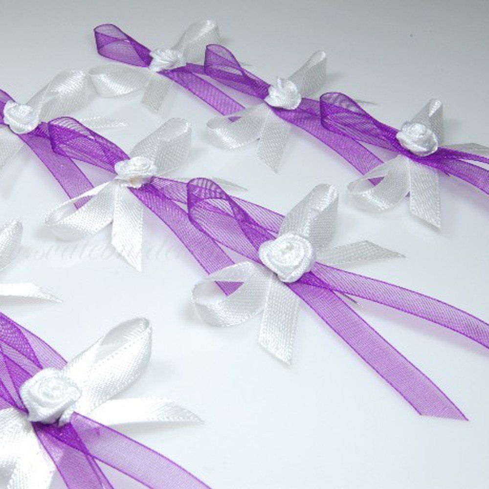 Svatební vývazky s růžičkou - bílá, fialová (1 ks)