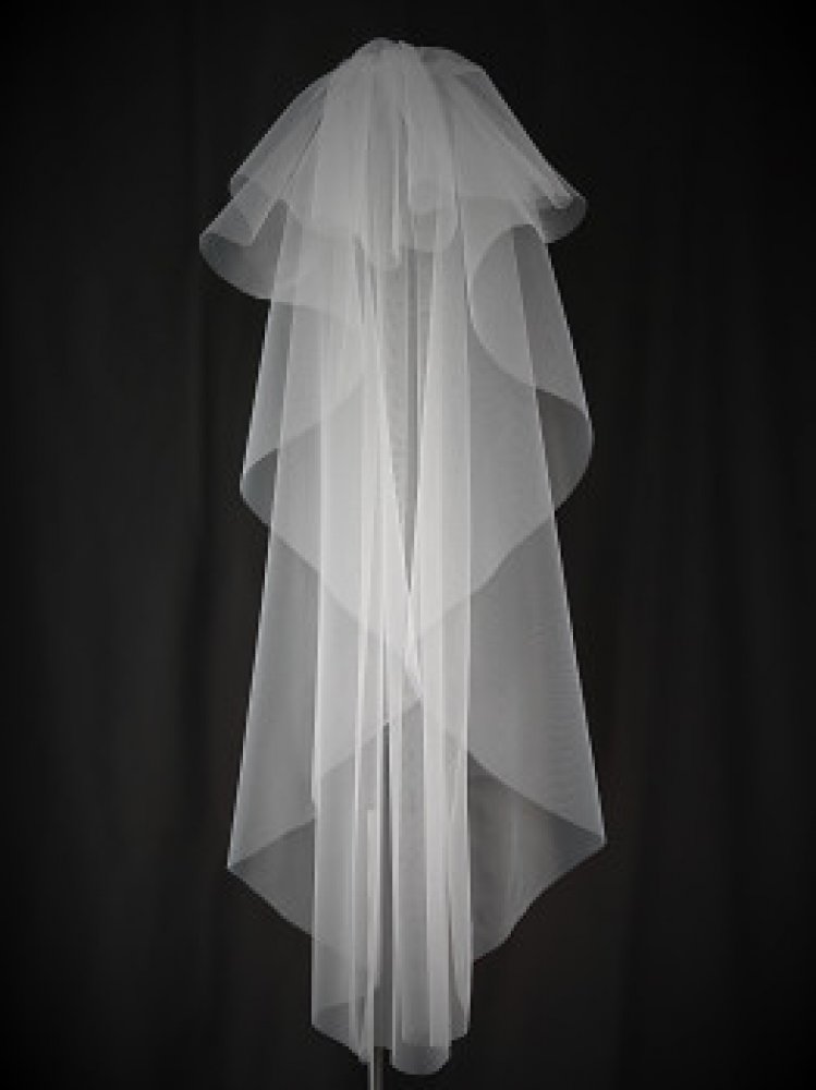 Krásný dlouhý závoj z velmi jemného a kvalitního tylu (hustější struktura látky a menší očka). Závoj krásně drží díky plastovému hřebenu, který má čirou barvu. Závoj Vám ušijeme v bílé nebo ivory barvě, jen poprosíme upřesnit barvu do poznámky. Délka 120 cm. Doporučujeme: Vyjměte závoj z obalu a nechte volně viset, sám se krásně narovná.