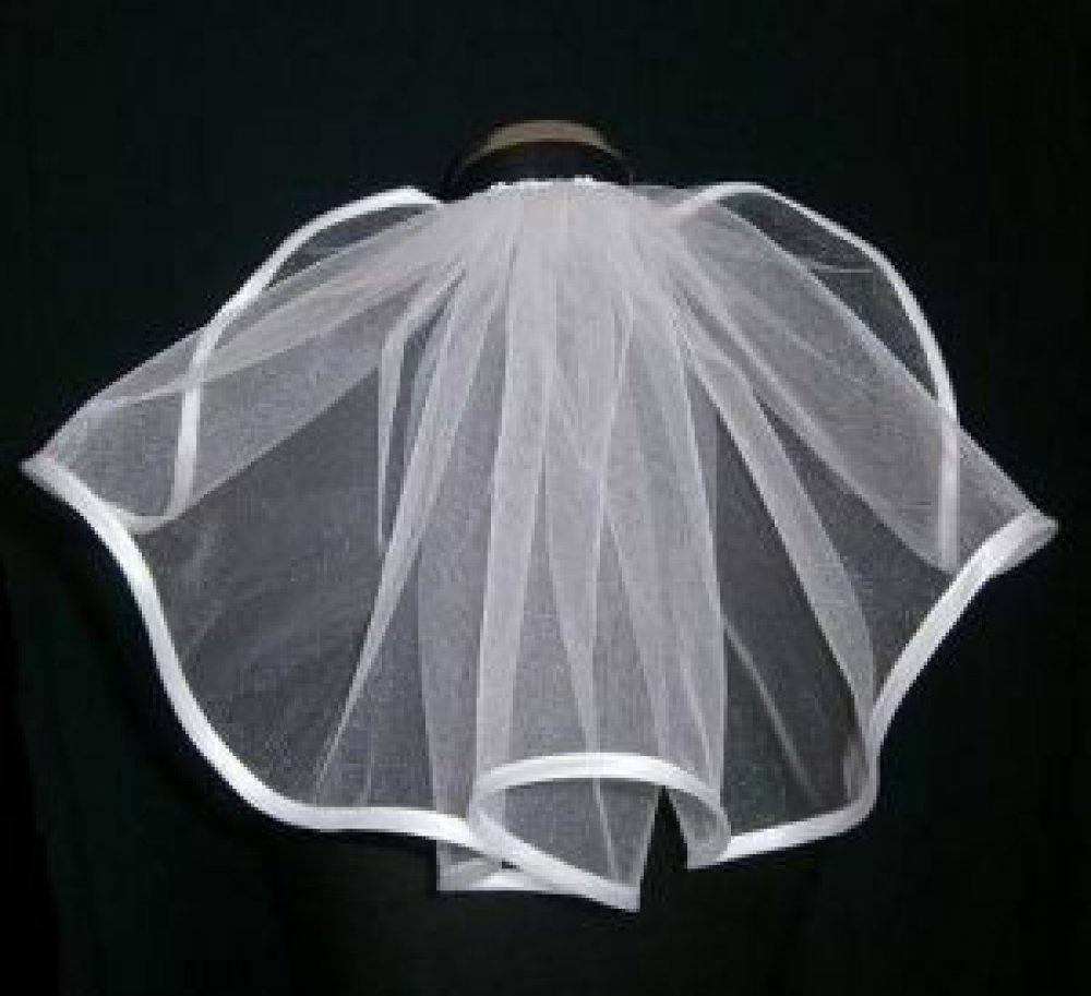 Svatební závoj jednovrstvý lemovaný 30 cm - bílá