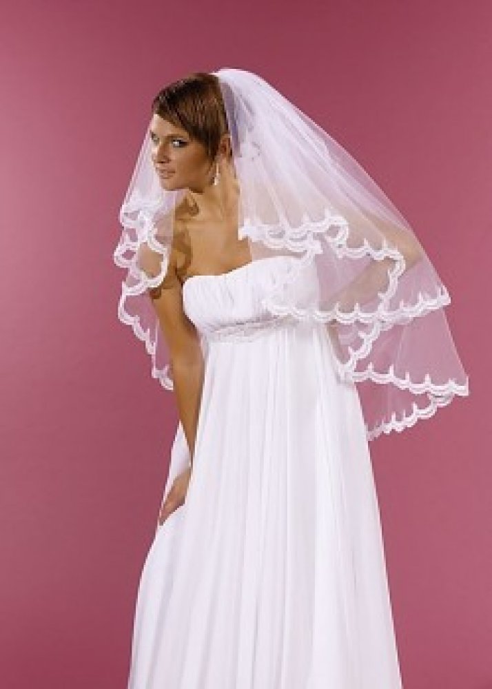Bohatý kruhový závoj s krajkovým lemováním. Závoj je dlouhý 95 cm. Závoj patří neodmyslitelně ke každé nevěstě.