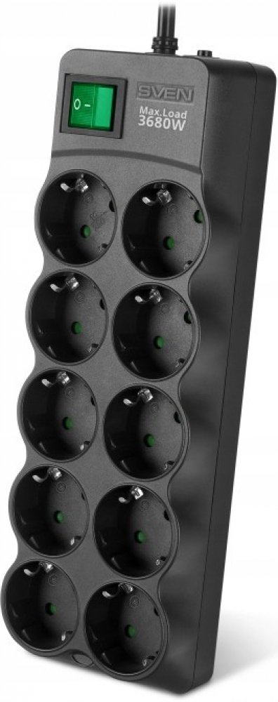 SVEN SF-10E-16 – 10zásuvková přepěťová lišta 3680 W, 3M