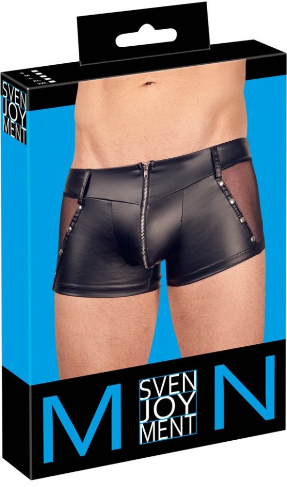 Extrémně sexy boxerky s kovovými cvočky a průhlednými vsadkami, které v klidu obstojí i jako odvážné šortky! Proč je to super? Vizuálně výrazný, drsný designVelmi pružný, příjemný materiál - maximální pohodlíKovový zip vpředu uprostřed - snadný přístup pro spontánní akci nebo rychlou návštěvu toaletyKrátký, sexy střih - zvýrazní vypracovaná stehnaPrůsvitné síťované vsadky na obou stranách pro extra špetku erotikyZpevněné lemyPraktická poutka na pásek - můžeš nosit i s páskem jako stylové šortkySpecifikace produktu, vlastnosti: Velmi elastický, pohodlný materiálKovové ozdobné cvočkyPrůhledné síťované vsadky po stranáchKovový zip vpředu uprostředPoutka na pásek v paseBarva: černá, kovové části ve stříbrnéMateriál: 90% Polyester, 10% ElastanDoporučené čištění: Per ručně ve vlažné vodě s jemným pracím prostředkem, nežehli, nesuš v sušičce.