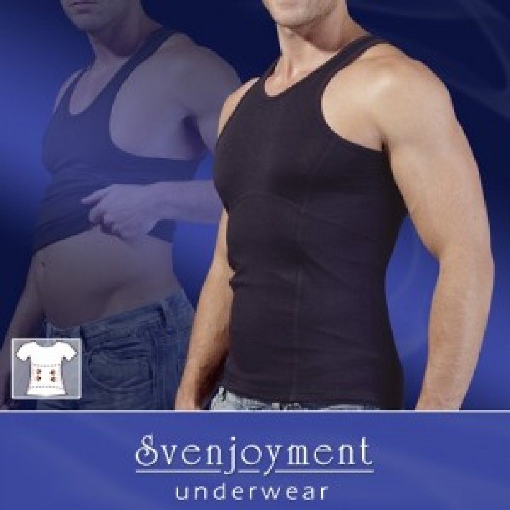 Tílko se zeštíhlujícím efektem vel. XXL- pod tímto černým tílkem malé břicho zmizí. Lemované, k formování postavy. Materiál: 90% viskóza, 10% elastan. Vnitřní podšívka: 90% polyamid, 10% elastan. Značka Svenjoyment.