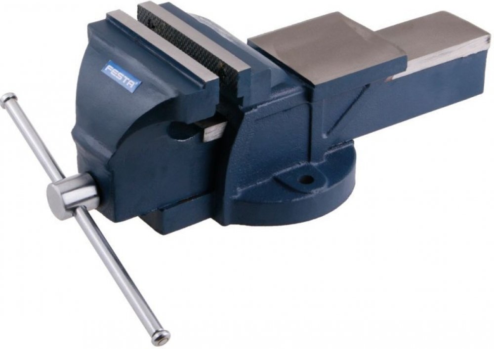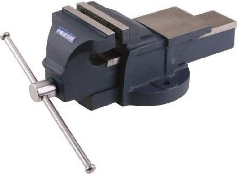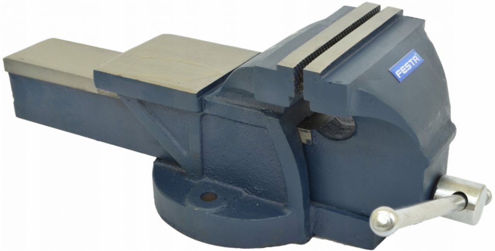 Svěrák s kovadlinkou z litiny, tvrzené čelisti, tělo a pohyblivé rameno odlité každé z jednoho kusu zaručuje velkou odolnost a pevnost.