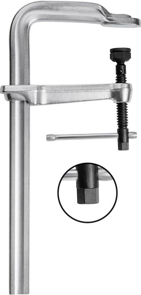 Rozsah upnutí: 1 250 mm Vyložení: 175 mm Rozměry vodícího profilu: 40x20 mm Upínací síla až 22 000 N při utahovacím momentu od 70 Nm. Dlouhá životnost díky speciální žáruvzdorné kluzné vložce ze slinuté slitiny, výklopné o 35°. Se šestihranem 19 mm na konci vřetena.
