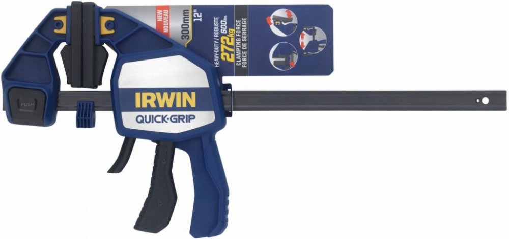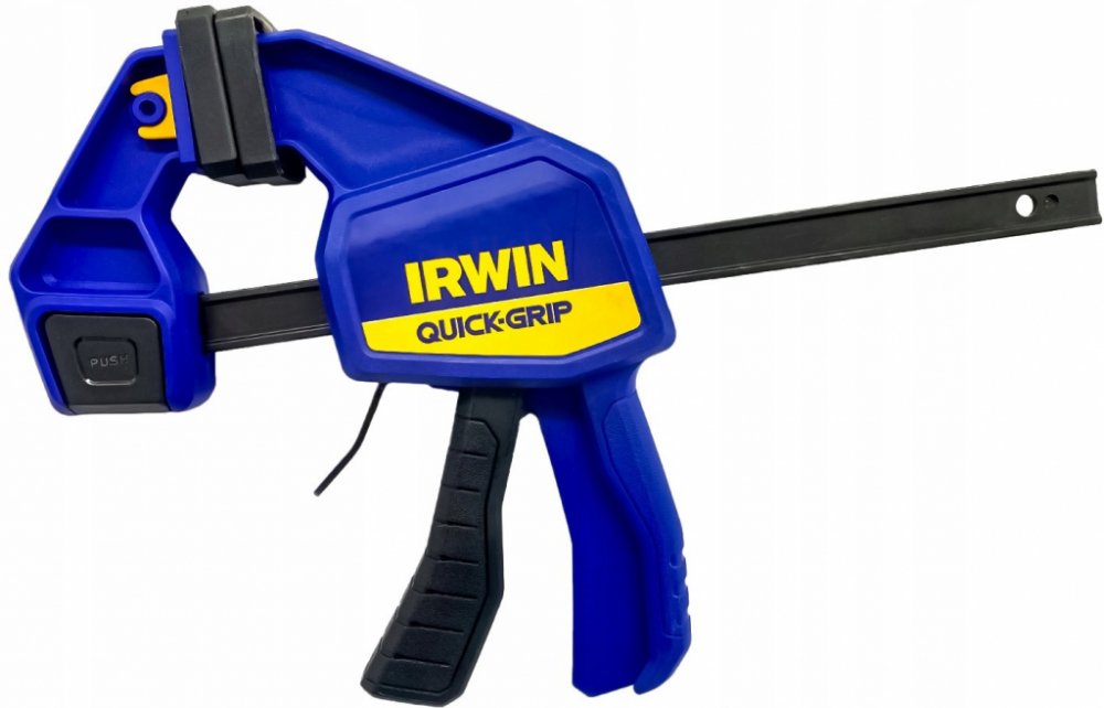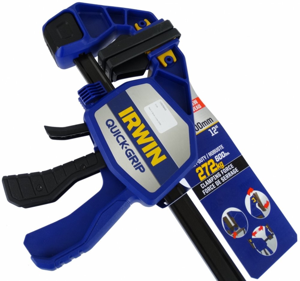 Jednoruční stolařská svěrka IRWIN® QUICK-GRIP® pro střední zatížení rovnoměrně rozloží až 136 kg trvalého upínacího tlaku.