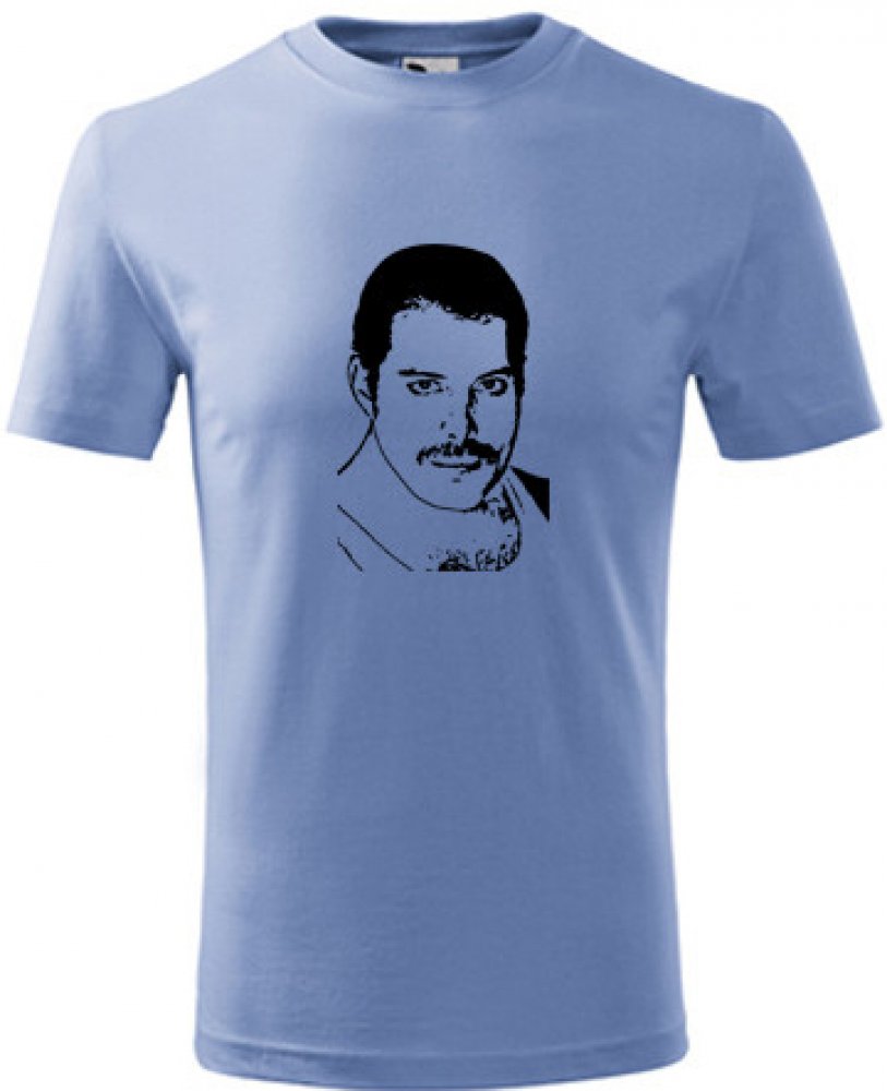 Nebesky modré dětské tričko Freddie Mercury. nabízené velikosti jsou 4 roky, 6 let, 8 let, 10 let, 12 let. Výběr z 13ti barev. Tričko patří do kategorií . Technologie potisku: Tisk na tričko je realizován pomocí termolisu a potisk je velice trvanlivý.