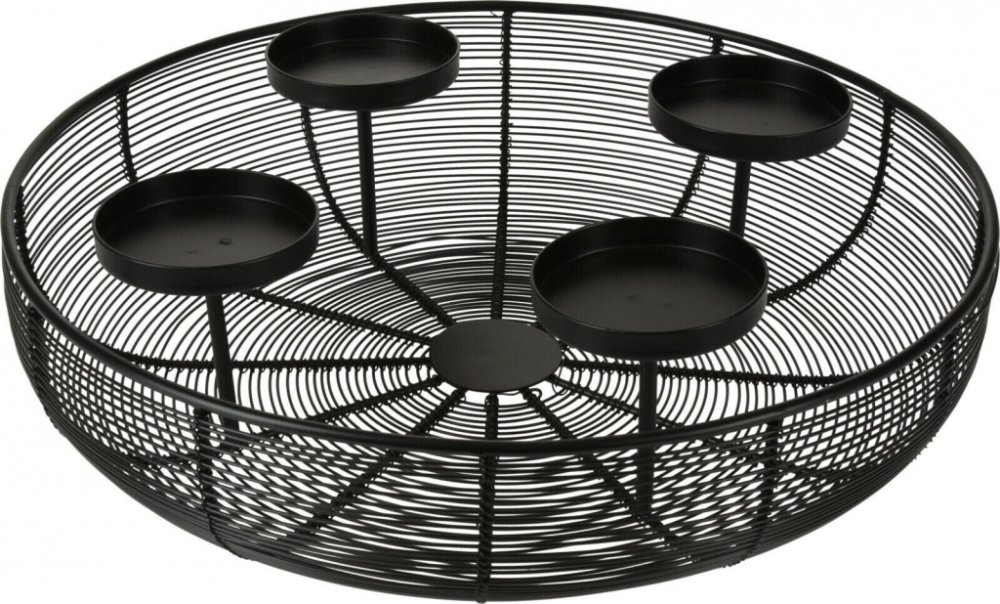 Svícen na 4 svíčky kulatý, pr. 36 x 10 cm, kovový drátěný ČER.