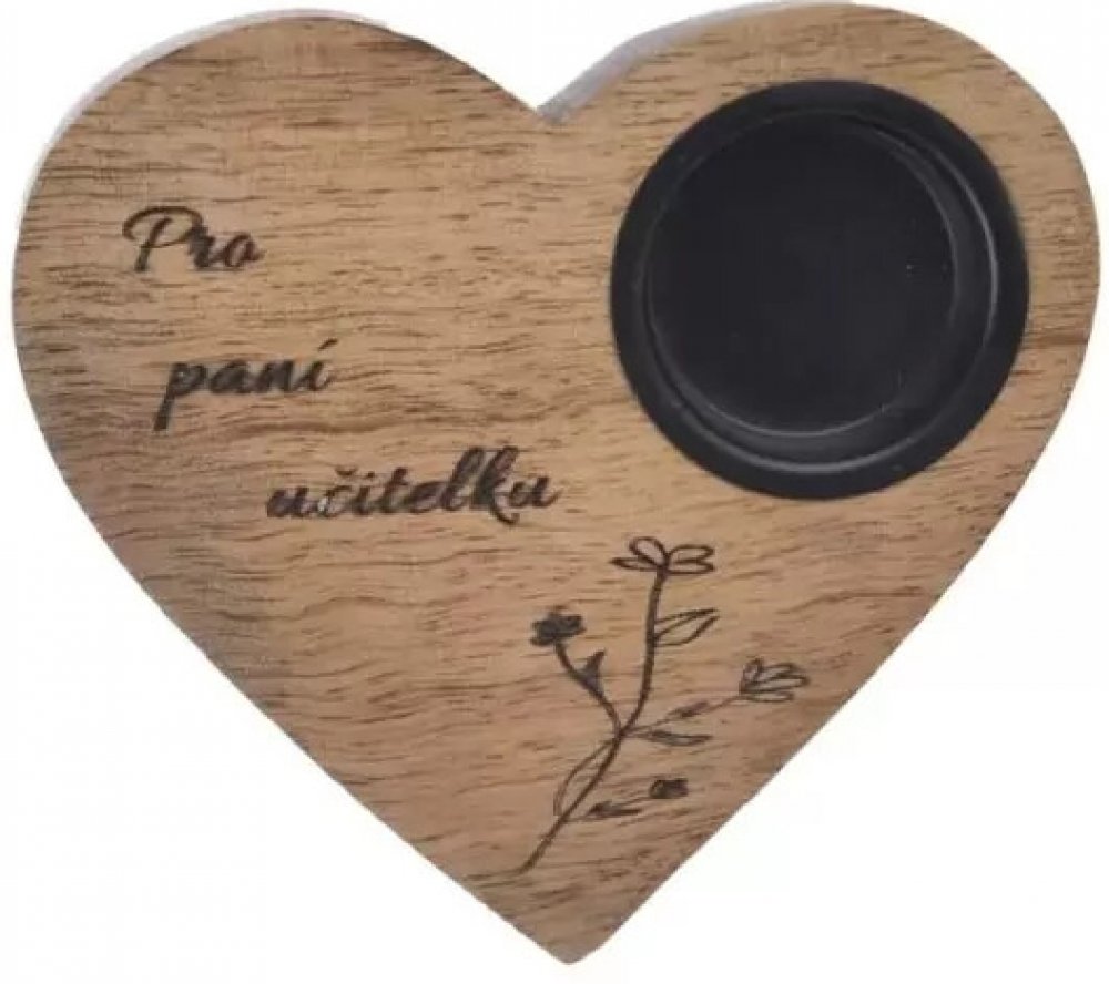 Svícen mango srdce Učitelka 13x12x2,5 cm