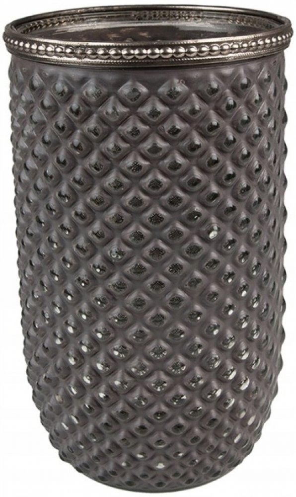 Svícen na čajové svíčky z šedého skla s ozdobným okrajem - 10 x 17 cm od značky Clayre & Eef.