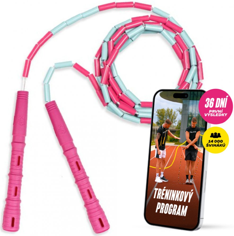 Švihadlo s korálky je trochu těžší do ruky a lehce pomalejší, takže lépe vnímáš švihadlo a dokážeš se s ním lépe učit nové věci a pilovat správnou techniku. Korálky se nekroutí, krásně drží tvar a zvládneš s nimi téměř cokoliv.