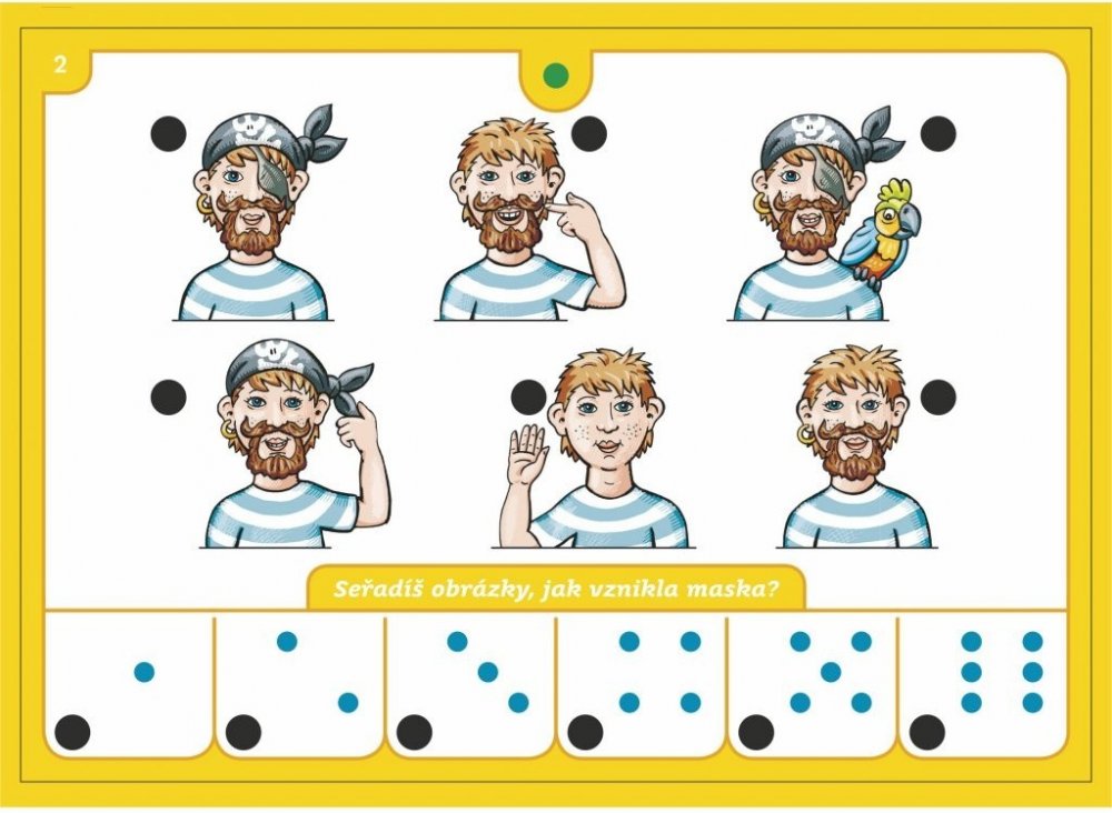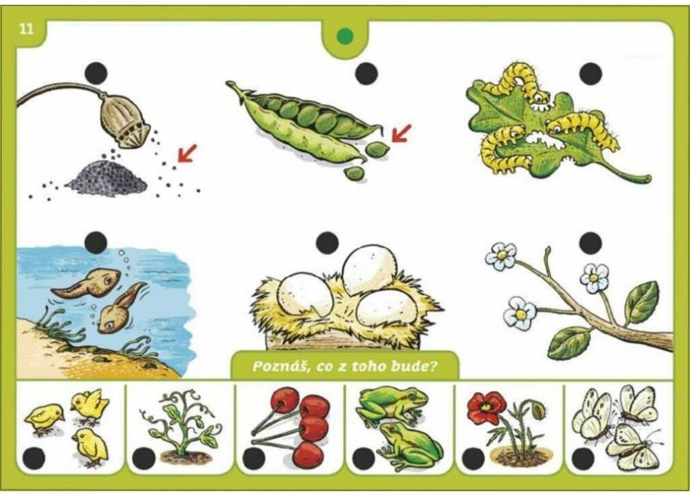 Obsahuje 16 listů se 176 obrázky, mezi nimiž děti hledají souvislosti. Každý list je zaměřen na určitou oblast dětského světa.