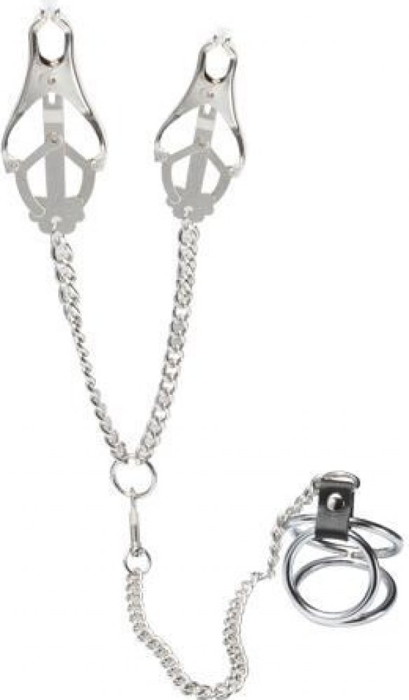 Svorky na bradavky s kroužky na penis 35 - 45 mm