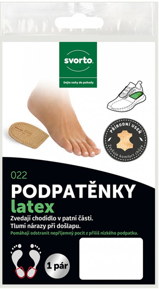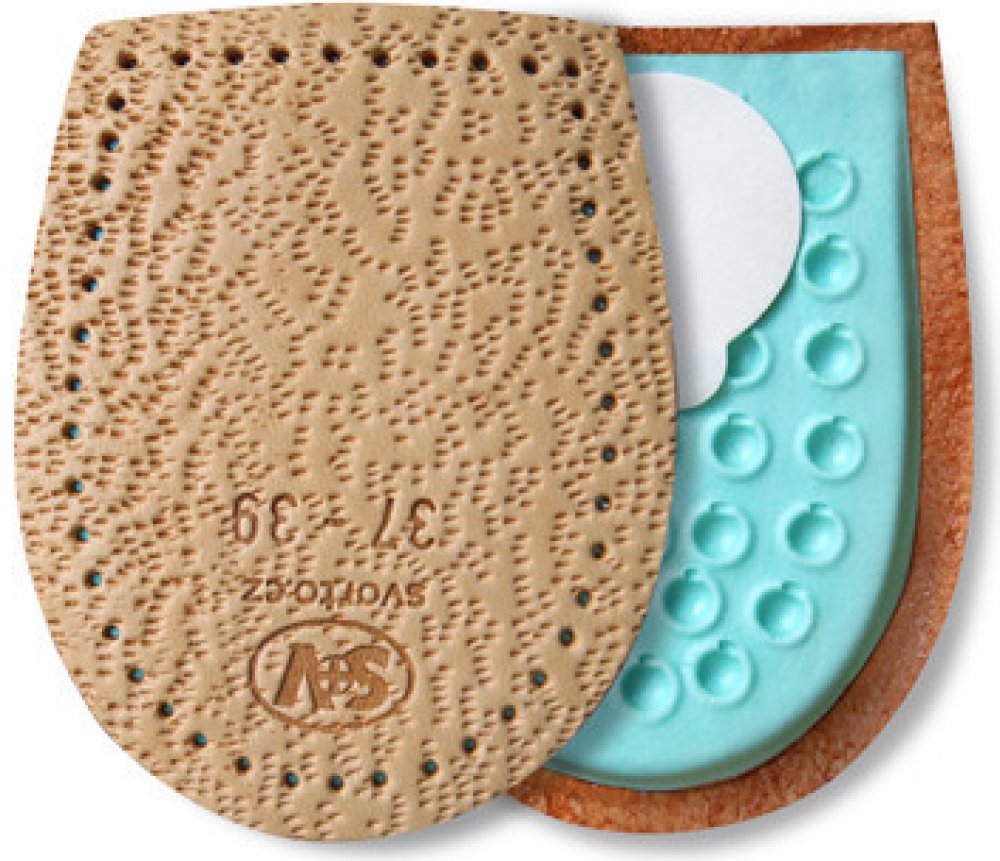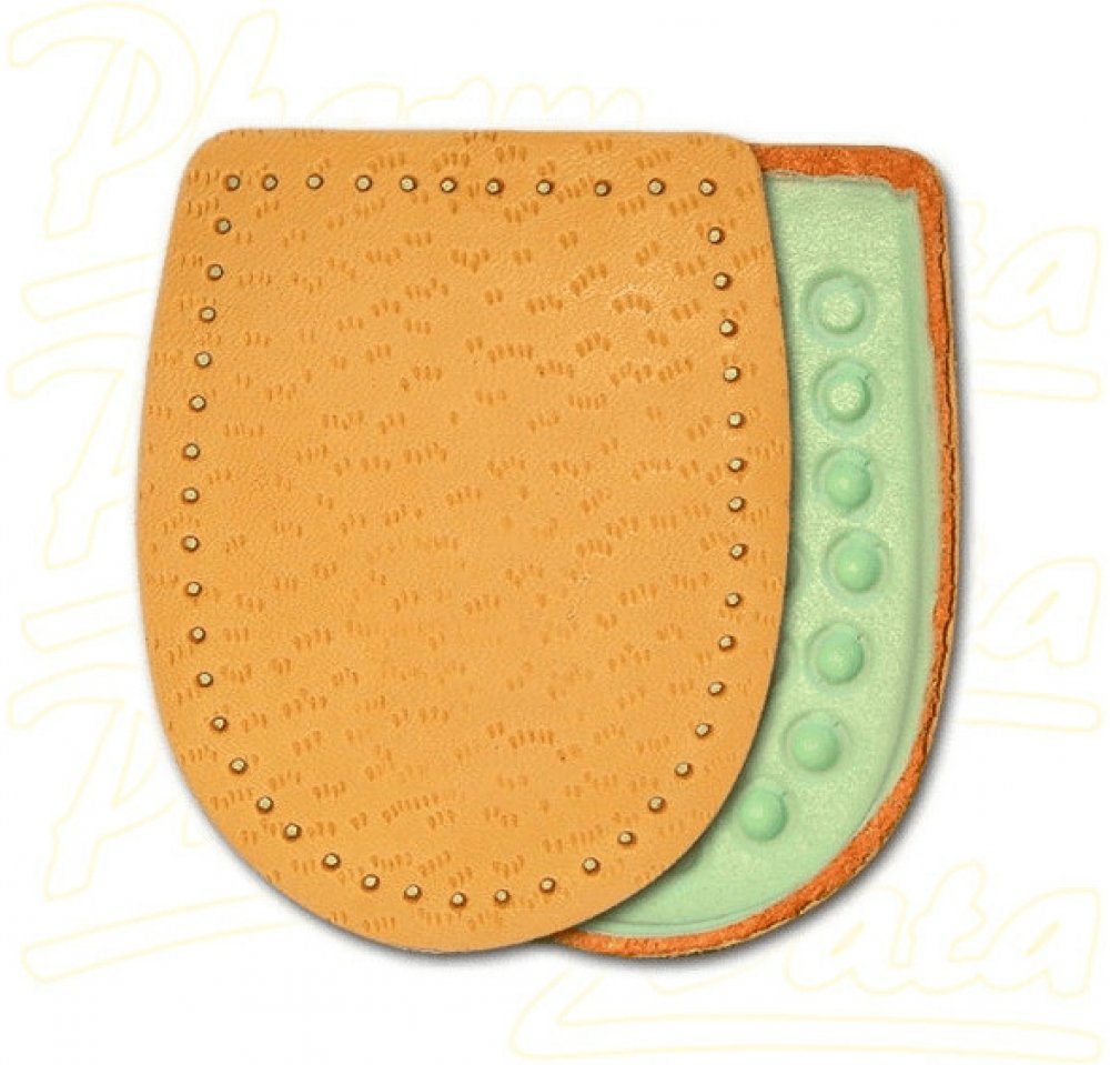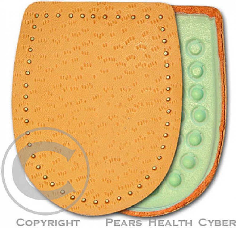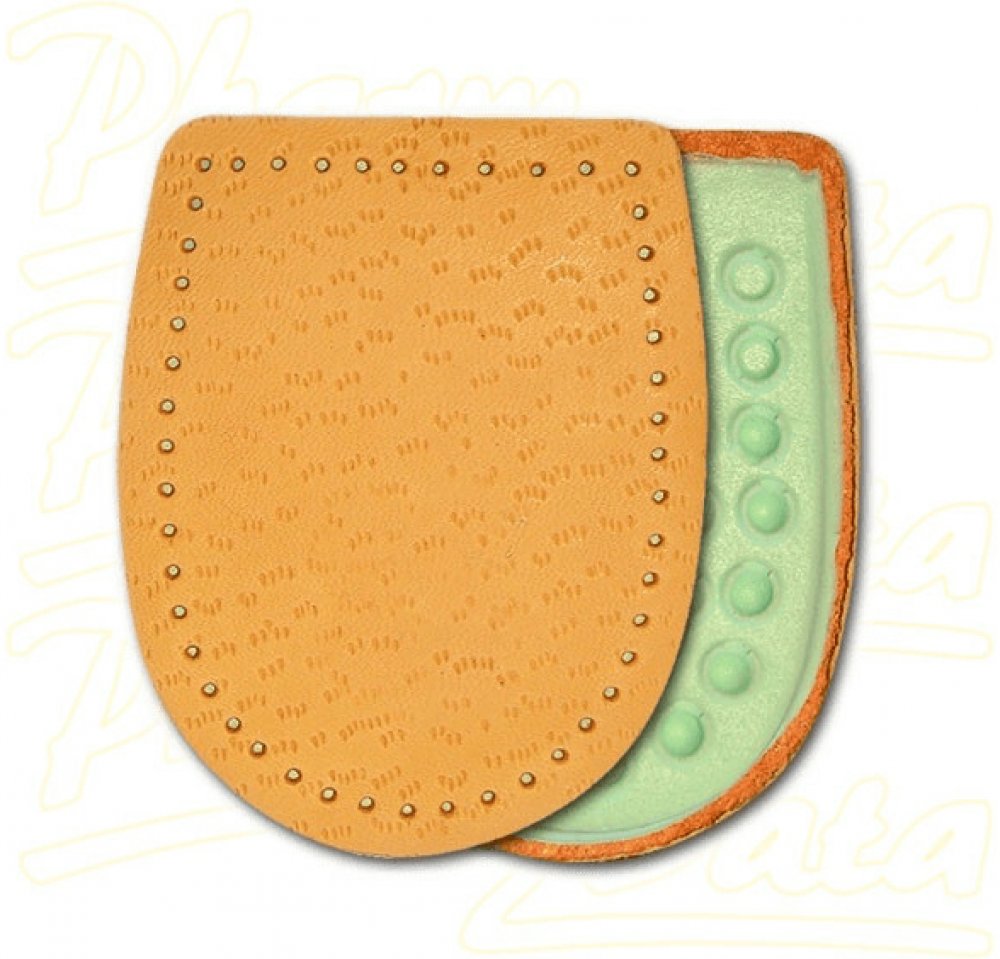 Odlehčí a změkčí bolestivý došlap při potížích s patní ostruhou. Tento nepříjemný výrůstek vzniká při opakovaném dráždění na patní kosti v místě úponu vazů, které zpevňují klenbu nohy. Podpatěnky tlumí nárazy a chrání před tlakem, který vzniká při došlápnutí. Vyrobeno z měkkého šlehaného latexu s odlehčením v místě patní ostruhy. Povrch je překryt měkkou jehněčí usní. Samolepicí pásek pro pevné uchycení podpatěnky. Pro velikost nohy 43-46. Hlavní vlastnosti: tlumí nárazy na patní kost při došlápnutí zmírňuje tlak na patní ostruhu změkčuje došlap Složení: Jehněčí useň, molitan, latexový výlisek. Použití: Připevněte do patní části obuvi pomocí samolepicí fólie. Používejte správnou velikost. Nepoužívejte současně s jinou podpatěnkou. Respektujte určení pro pravou a levou nohu. Upozornění: Pokud se léčíte s diabetem, konzultujte použití podpatěnek s lékařem.