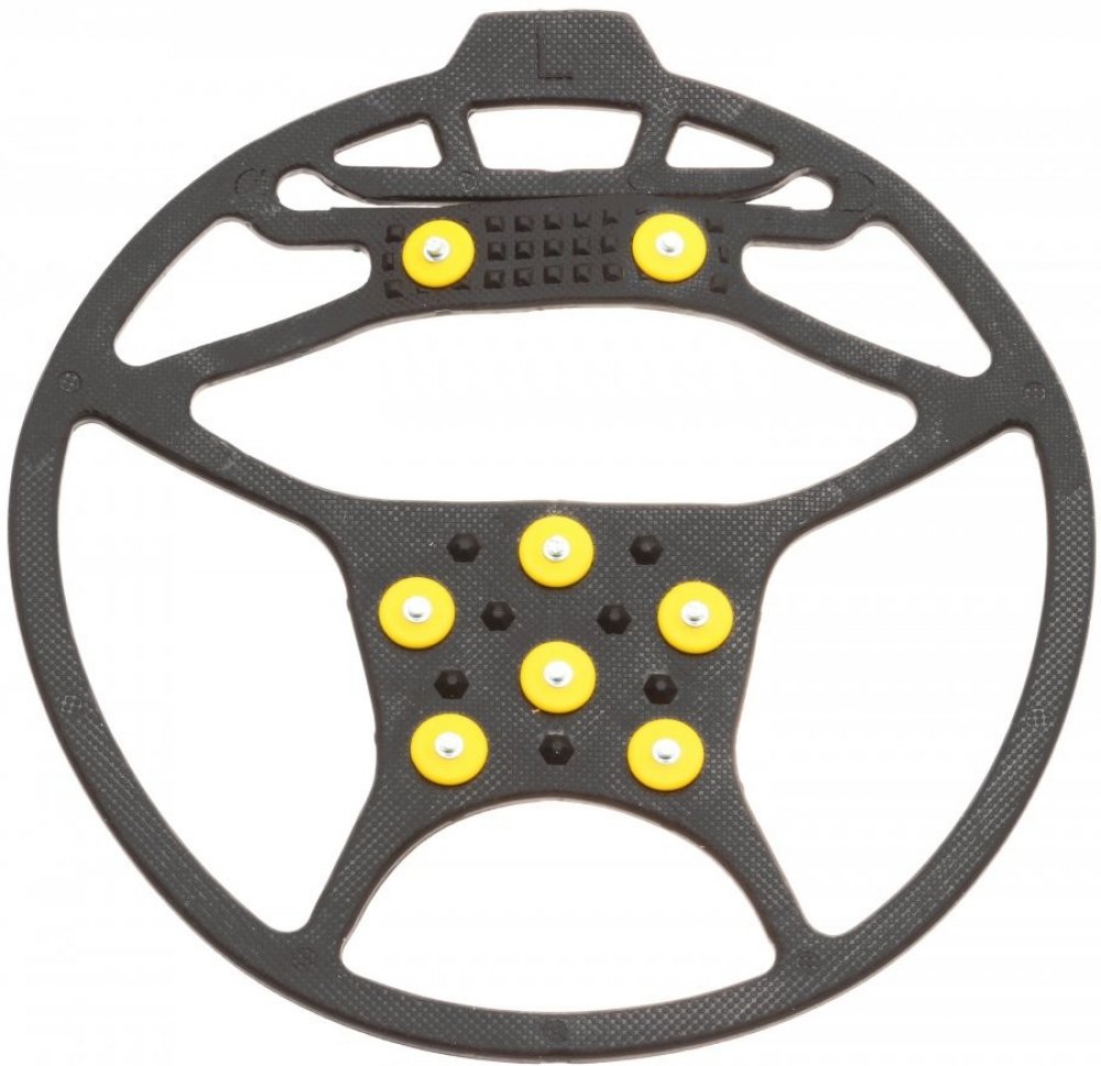 Zvolte správnou velikost - doporučujeme vyzkoušet. Nasaďte na obuv dle fotografie na obalu. Hroty musí směřovat dolů.