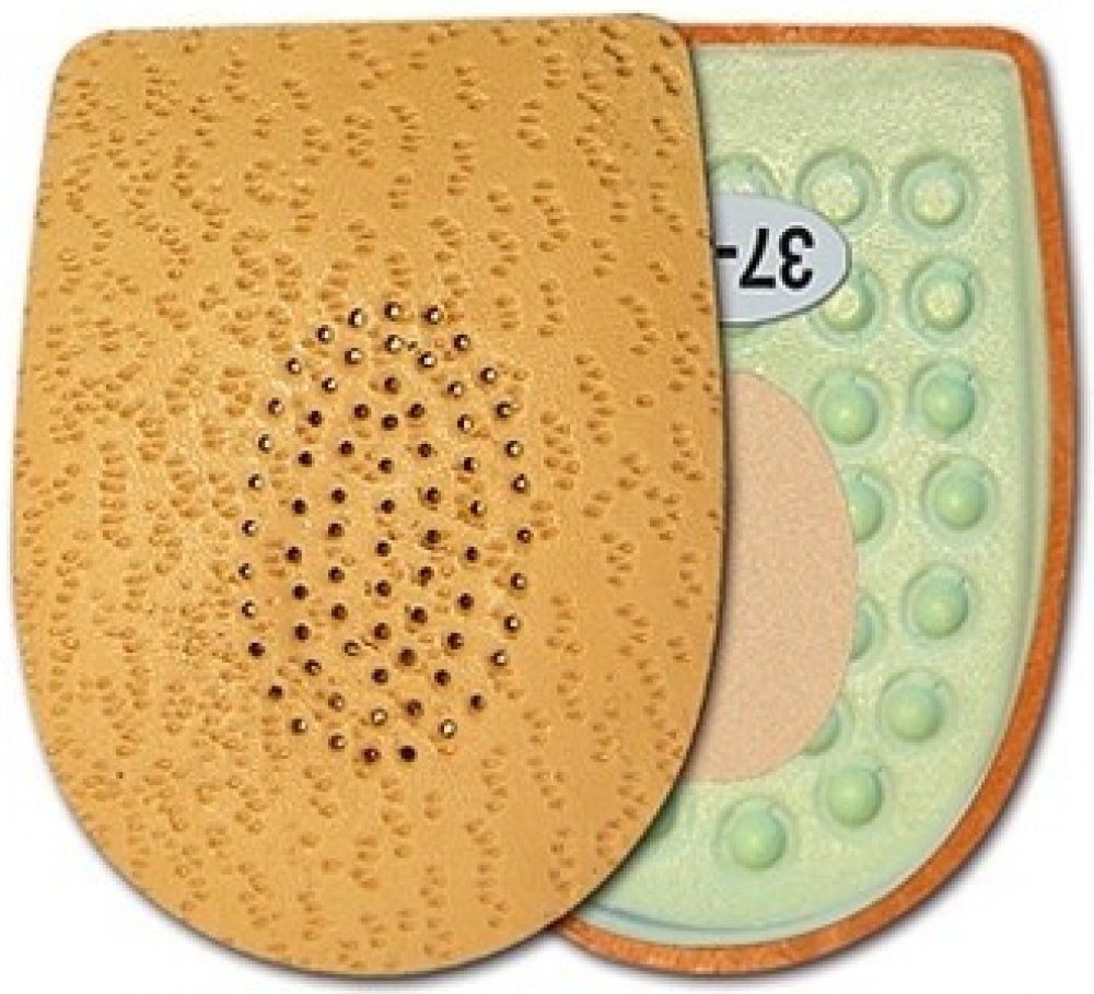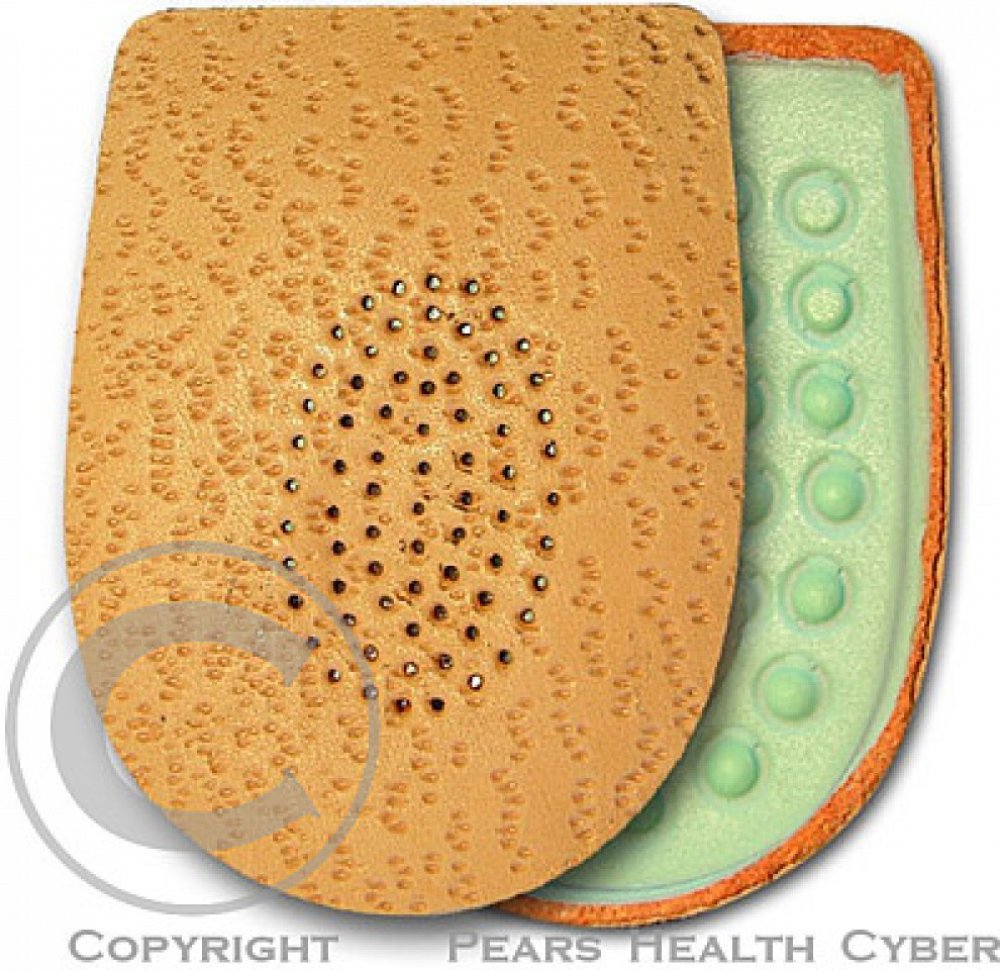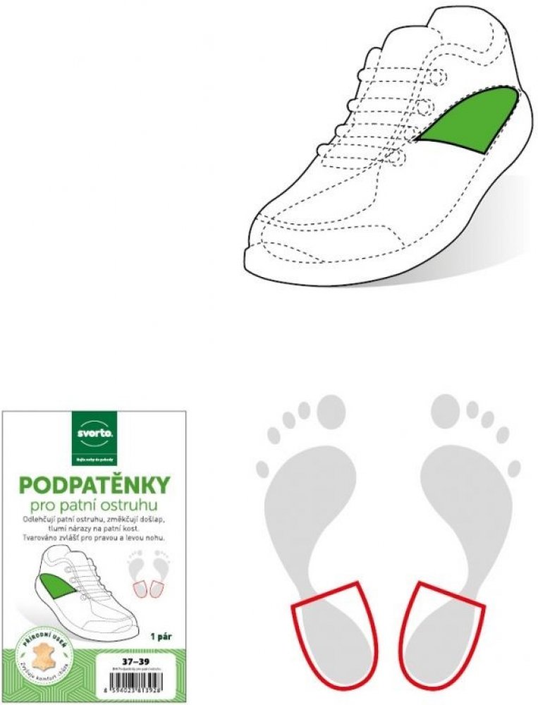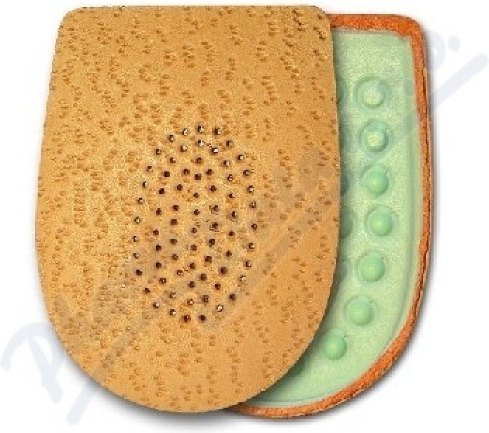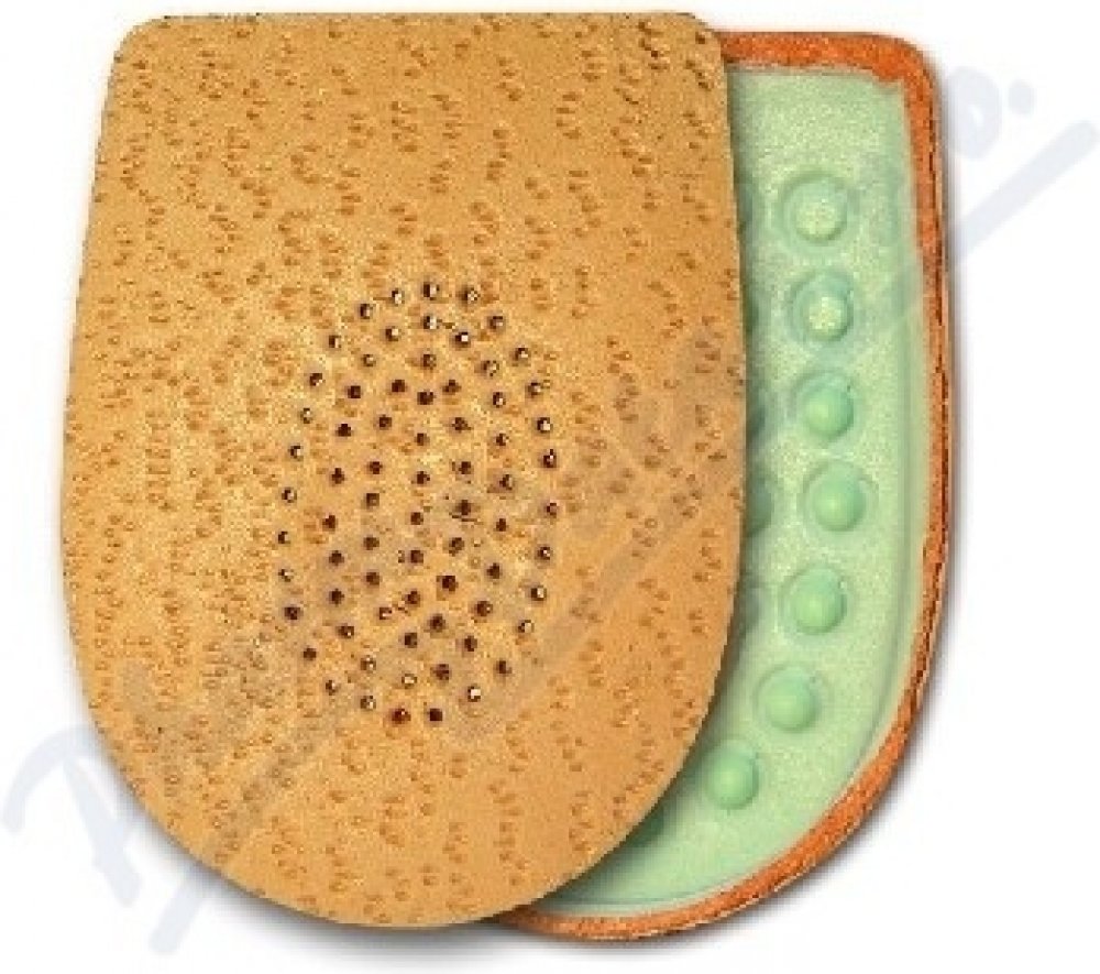 Podpatěnka je vyrobena ze šlehaného latexu, je měkká na došlap a tlumí nárazy na patní kost. Pomáhá odstranit nepříjemný pocit z příliš nízkého podpatku, zvedá chodidlo v patní části a odstraňuje bolestivé řezání okrajů svršku obuvi. Použitím jedné podpatěnky lze vyrovnat rozdíl délek dolních končetin. Povrch je překryt měkkou jehněčí usní. Kvalitní samolepicí fólie zajistí podpatěnku proti posunu...
