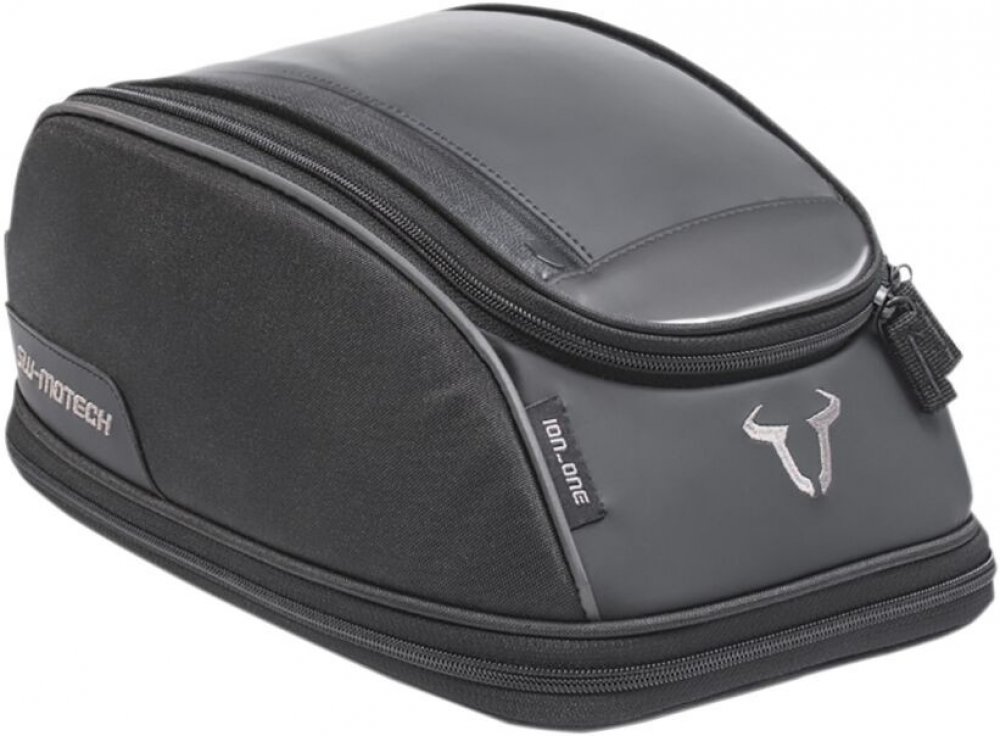 Tankvaky na motorku z řady ION jsou k dispozici ve třech velikostech a tvarech. Tahle generace tankbagů zaujme svým elegantním designem. Měkké vinylové detaily, vyšívaný býk SW Motech a reflexní textilní lemování dodávají těmto černým brašnám nezaměnitelný vzhled. Mají samozřejmě osvědčené funkce, jako zvětšení objemu, integrovaný držák mapy, vnitřní síťované oddíly...to vše za atraktivní cenu. Jednou z obzvláště užitečných funkcí pro každou jízdu je praktický montážní systém. Během několika vteřin lze tankvak ION připevnit k podkově ION a stejně rychle jej odstranit pomocí systému Quick-lock.