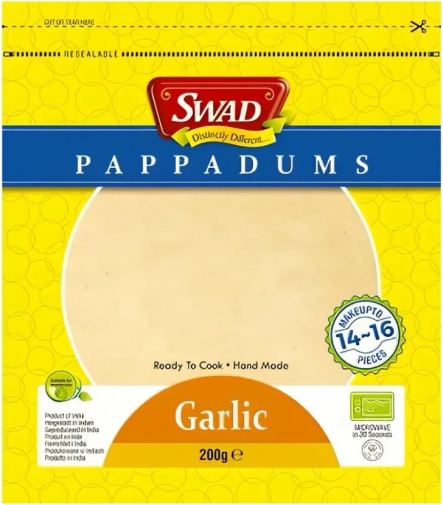✨ Česnekové papadum: indická křupavá tečka k jídlu SWAD papadum s česnekem je tenký indický chlebový plát, který udělá z obyčejného servírování malý zážitek. Po krátké úpravě se promění v lehce křupavou přílohu s příjemně výraznou česnekovou vůní – ideální, když chcete k jídlu něco rychlého „na zakousnutí“.Skvěle doplní indická kari, omáčky i luštěninové pokrmy, ale funguje i jako jednoduchý snack...